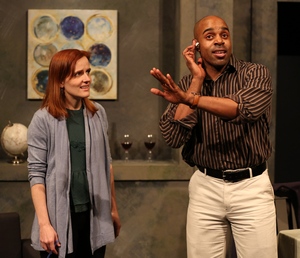 It's not that his piece, Hate Crime, eschews sex and power. It's about both, actually. It's just that the playwright has nothing new to say about either of them. Instead, he merely gives a slight twist to the film noir trope about a pair of lovers planning to murder the spouse of one of them and run off with the insurance money. Spoiler alert: the lovers (Chauncy Thomas and Spencer Sickmann) and the never-seen spouse are gay. Otherwise, it's the 1944 movie classic Double Indemnity, but without the star power of Barbara Stanwyck and Fred MacMurray, or director Billy Wilder at the helm. Fortunately, the actors, as well as the festival's director John Pierson, fare much better with the evening's other two entries, James Haigney's Winter Break, and, especially, the clever and imaginative closing piece, Carter W. Lewis's Percentage America. Both of these plays provide fresh takes on topical issues. Haigney's Winter Break imagines the impact on a white Episcopalian suburban family when the college-age daughter (Kelly Schaschl) converts to Islam and announces her plans to spend the time between semesters to travel to Turkey in order to study with a group of Sufi Muslim mystics. The mother (Autumn Dornfeld) is torn between trusting her daughter's judgment and fearing for her safety. Mr. Sickmann, a standout in this role, joins the battle as the argumentative but loving older brother who foresees the worst possible outcome and provides enough evidence to suggest his sister isn't being entirely honest with them when she promises to return home in a couple of weeks. Although the subject matter is not unfamiliar, the playwright has done an especially fine job of suggesting how young college students, away from home for the first time, are susceptible to the seduction of the ideals espoused by others. He wisely ends the play by leaving us on tenterhooks as to what will ensue. In Percentage America, Carter W. Lewis asks us to consider the question, "do you think the truth is worth knowing," as he brings together a man (Mr. Thomas) and a woman (Ms. Dornfeld) on a first date. At first, the play seems to be a light-hearted romantic comedy, with lots of confessions about their not-entirely-accurate profiles on the dating website that brought them together. But it evolves into something far more intriguing as the pair embarks on a fact-checking adventure, not about each other, but about an item in the news that has become a mainstream and social media sensation. It is about a high school student (Ms. Schaschl) who was found wandering about the Rose Garden at the White House and had some sort of contact with President Trump. Reports on the incident vary, depending on the source (Fox vs. CNN vs. Twitter), and so the couple decides to investigate for themselves. In the end, they wind up as the only ones who know what actually happened and how it led to a disturbing outcome. It solidifies their bond, but leaves them unsure as to what to do with the truth now that they have uncovered it. Viewing short plays of the sort that make up this evening is a good way for discovering new or unfamiliar talents. Mr. LaBute, of course, is an established and Tony-nominated playwright who will undoubtedly be back with something of more substance than what he has to offer here. But what makes the evening worthwhile is the opportunity to see the well-constructed, thought-provoking, and original works by Mr. Haigney and by Mr. Lewis. These are nicely supported by the company's mix-and-match cast, and Patrick Huber's simple but efficient set design, in which elements of each of the plays are quickly rearranged during brief breaks to make way for the next.
