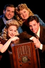 It's a pretty good sign when a 1940's-themed musical about a singing group and their brave sacrifices during World War II is endorsed by one of the Andrew Sisters. When The Lights Go On Again, a nostalgic trip back in time to when commercials were sung live and every family planted a Victory Garden, is a fitting tribute to the songs and character of a bygone era. In the ballroom of The Hotel Roosevelt, a quartet called The Moonlighters performs regular WNEW radio broadcasts, blending harmonies so seamless it's nearly impossible to distinguish where one voice begins and another leaves off. After a successful audition with the Glenn Miller band, The Moonlighters are on the verge of stardom, only to have their show interrupted by the announcement that Japan has invaded Pearl Harbor. Things get complicated when the younger male member of the group decides to enlist, turning the quartet into a trio and leaving his young loveand fellow Moonlighterbehind. The Moonlighters decide to join the USO, where eventually the lovers are reunited and a surprise double engagement ensues. However, the story itself takes a backseat to the music, and deservedly so. Mined from such greats at Harold Arlen, Irving Berlin, and Frank Loesser, the 28 songs that propel the evening along are simply glorious. Mostly forgotten gems, with a few enduring favorites mixed in, these songs present the immensely talented cast with the perfect opportunities to shine. The three-piece band headed by Doyle Newmyer (who also did the fresh arrangements) is the perfect companion.