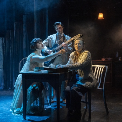 Whisper House started life as a studio album in 2009, not long after Sheik's multiple Tony winning Spring Awakening ended its initial Broadway run. The album was quickly turned into a "musical play" that was initially performed in 2010 in San Diego and had at least one other production in Chicago before wending its way east. This production by the Civilians marks the show's New York debut. It follows the story of young Christopher (Wyatt Cirbus), who has been sent to live with his taciturn Aunt Lily (Samantha Mathis) on the heels of the death of his father in a World War II battle and the subsequent mental collapse of his mother. "Don't call me "ma'am" or "aunt," Lily instructs Christopher. "Or auntie, that's even worse." They settle on "Miss Lily" for whatever communication is necessary between them. Lily's decidedly uninviting home sits on the rugged coast of Maine, a lighthouse that she oversees and where she lives a mostly isolated life. Her only regular companion is an assistant, a Japanese man named Mr. Yasuhiro (James Yaegashi). There's also the local sheriff (Jeb Brown), who pops in on occasion and is generally friendly, except when it comes to Mr. Yasuhiro. Given that the musical takes place in 1942, at a time of war-fed anti-Japanese xenophobia and internment camps, it is no spoiler to suggest you will likely foresee the general direction of the plot. But pay heed to the details as they unfold. As in life, they are seldom as predictable as you might guess at or wish for. As for those "whispers," they are the show's songs that are performed mostly by a pair of generally unpleasant ghosts (Alex Boniello and Molly Hager) who have been hanging around the lighthouse ever since they died in a boating accident. While they provide some narrative context to the plot, they are mostly there to wallow in their own fates while singing moody alt rock tunes with sardonic lyrics about how everyone would be "better off dead." Throughout the 90-minute show, they are there to feed into the living characters' negative emotions of fear, loneliness, anger, and regret. And, really, if you say you don't believe in ghosts, that doesn't bother them, as "there's nothing you can do/cause we don't believe in you." By show's end, we are left with a scintilla of hope, and, for the time being, even the ghosts have relented somewhat, like the ebbing of the tide that carried them to shore long before. But do not go expecting grand revelations or sweeping emotional transformations. This is decidedly not The Secret Garden. The show is called Whisper House for a reason. It is as spare and precarious as its setting. The best we can do, it seems to say, is to hold tight to one another, knowing, as the ghosts are happy to remind us, "none of us survive."