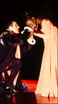 The weakest link in the cast is Andrew Weems, as the nasty and ill-fated Cloten. He attacks his lines viciously and lacks the balance and control so coolly displayed by others in the cast. His Cloten seems less rich and more black and white than most of the other characters. Problematic and unfortunate as his Cloten is, aside from that and the bizarre musical numbers, there's little else to fear overall. There's plenty of other color and life with which Sher has otherwise infused this Cymbeline.