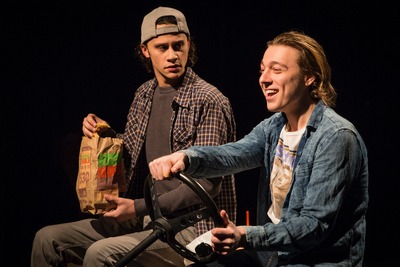 In many respects Awake is reminiscent of the Living Newspaper form popularized by the Federal Theatre Project of the 1930s. Focusing on a particular issue of the day, such as affordable housing, agricultural reform, or availability of electricity, the plays presented a series of vignettes based on national headlines and government statistics. The plays tended to be one-sided in their treatment of the material, and this was a primary reason for the right-wing Congress to defund the Federal Theatre Project in 1939. Manning's own playlets, though not drawn from actual headlines, appear to derive from recent news accounts, and they undeniably speak (without pandering) to the critical concerns of left-leaning audience members. "Flowers," for instance, a monologue blisteringly delivered by Sandra Parris, describes the experience of an African American woman arrested in an upscale, gated community. Addressed to an anger-management support group, a character named Cynthia recounts the humiliating ordeal as well as the racially exploitative events that led to the incident. The premise is similar to recent news stories about white neighbors and hotel security guards calling the police to report the supposedly suspicious actions of African Americans. As Cynthia struggles to manage her anger, the character's vulnerability and accumulated indignities emerge in flashes, and the impression is heartbreaking. As one would expect from an evening of one-acts, some entries are stronger than others. The most successful are those that take aim at the controversial material through carefully delineated characters and surprising revelations. The first and second act closers, which both include a pair of teenagers on a road trip, are especially haunting. In "A and J Rule the Universe" Alex and Jeremy (in spot-on performances by Vinny Baierlein and Trey Santiago-Hudson) are not unlike Harold and Kumar or Bill and Ted on a similarly excellent adventure. While they scarf down French fries, pepper every sentence with "dude" and other recognizable expressions from stereotypical teenspeak, they retell urban legends about body parts in fast food items and exaggerate tales of their sexual conquests. As the scene progresses, however, the darker reason for their car ride becomes clearer and the intended outcome (which will not be revealed here) is both unsettling and chilling.