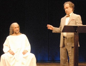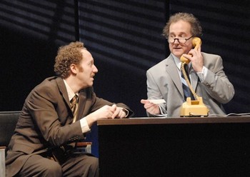Coen never condescends to religion in "Debate," but spares no blows for those who explore, challenge, or belittle it without considering the implications. Unfortunately, Coen is more or less guilty of this as well, never elevating his potentially hilarious premise to the comic heights a more detailed work might reach. It's the funniest of the three scenes only because it's the most overtly outrageous, and there's something irresistible about watching the preternaturally prim Abraham, decked out in long silver dresses, rant about nipple piercing before assailing his good-natured counterpart with swift kicks to the posterior. But just as audience members watching Abraham and Linn-Baker 's play-within-a-play can't agree on the piece's meaning or the characters' motivations, the laughs of the segment are too inconclusive to carry any particular weight. The same is true of the rest of the show: The single joke driving "Waiting" is an ancient one, while "Four Benches" barely has jokes at all - it serves as a contemplatively charming centerpiece that seems intended to reveal the other scenes as shallow treatments of weighty topics, but instead diverts attention from their sharper stories. What stands out instead are Pepe's quicksilver production, which provides more breathlessness than Coen's writing manages, and the nine expert performers who can make mountains out of their molehill-sized roles. Slotnick's disintegrating Nelson, McCann's curt typist in the first scene and argumentative date in the third, Elizabeth Marvel's bracing girlfriend of God and determined woman with a baby carriage, and Cake's self-absorbed git of a waiter in "Debate" are among the finer portraits painted, but each is memorable both for what they accomplish with so little and how much more you're missing from such a gifted company. Stick with them long enough, though, and you'll see everything they and Coen have to offer in this enjoyable-enough puzzle of an evening. It's just that the last piece, crucial in identifying the final picture, is nowhere to be found. If this makes for a disappointing cap to Almost an Evening, at least there's no question that the title is a chillingly accurate indicator of what you'll get.
