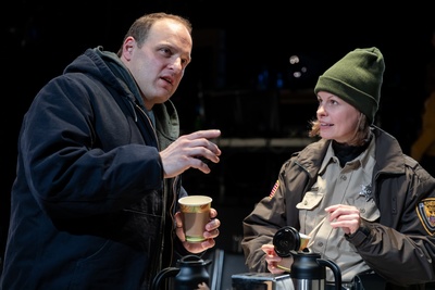 The performances under Seth Barrish's direction are excellent. Mitchell plays Rubens as a hapless everyman, and he impressively exhibits the character's evolution from willful obtuseness to victimhood to overwhelming despair. The other actors masterfully demonstrate that tragic events ripple through a community and leave no one unscarred. As a loving and supportive wife, Lenhart shows the collateral damage to her own life, and even as Deputy Stevens is celebrated for her heroism, Patterson presents her as riven with confusion and self-doubt. Brock, who plays the tough-as-nails mother of a shooting victim, is heartbreaking in her short scene. 17 Minutes tackles one of the most pressing contemporary social problems facing the United States. While politicians, pundits, and concerned citizens debate the topic (or alternatively speak volumes through their silence), Organ's play accomplishes what the theatre does best: It presents this issue not as an emotionally fraught intellectual argument, but as a complicated and compassionate human drama.