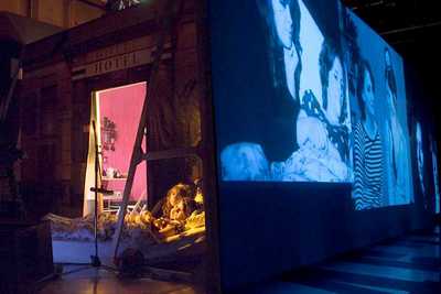 One of the major accomplishments of Kitchen, which first appeared on these shores as part of The Public's 2011 Under the Radar Festival, is how difficult the show and the Gob Squad players (jointly from Germany and the U.K.) make it to distinguish between those two forms. Upon arriving, the audience is invited to tour the stage, most of which is configured to look like exactly the proper kitchen setting, but that's the only up-close glimpse you'll get; once the action begins, the complete set is blocked by a movie screen on which three different videos are constantly projected (in black and white). The action technically occurs in the same room as you, but you're always somewhat removed from it. That ends up being neither incidental nor undesirable, given that we're supposed to see this as a window into life and not life itself. It begins as a tribute to, or perhaps an invocation of, the 1965 Andy Warhol film Kitchen, a fascinating 70-minute cinematic implosion that captured both the countercultural spirit and the social cluelessness of the time, and then expands its point of view into other Warhol works as diverse as his silent screen tests and titled avant-garde works Sleep, Eat, and even Blow Job. What results is a full retrospective of both Warhol's work and the mindset of a chapter of history that, judging by its remnants, is not always easily explained. One actor deployed the word "revolutionary" early on in describing these pieces' impact, but the Gob Squad never quite makes that case given the extra 46 years or so of history that have since unfolded. What the group does succeed in doing, however, is transforming Warhol's locked-in-the-moment creations pondering questions of identity into fresh evocations that rekindle those concepts for us today. As one reality dissolves and another is created, the past and present, fact and fiction, and drama and comedy all blend together so seamlessly (and sometimes harrowingly) that you feel as though impeccable coordination is the only way it could possibly work. Yet even that's not the case. The richest magic of the show comes from the components that are assembled, reassembled, and upended in increasingly unpredictable ways. First is that of the seven members of the Gob Squad, only four appear in any given performance; second is that four audience members are brought onstage (only if they're willing, mind you) to augment the company, and play roles of astonishing length and (sometimes) bewildering complexity; third is that, because those roles are of the Gob Squadders themselves, the gender-bending aspects can become so total that you may witness, as I did, an explosive panoply of confusion and sexuality that transforms the deceptively sedate 1965 setting into an anything-goes 2012, while never violating the precepts or the delicacy of the previous era. How exactly does it happen? Darned if I know. But at the performance I attended, one audience actor hammed his way through a screen test, another plowed into Sleep with his eyes open, and two others brought little more than glazed expressions and monotonous voices to two separate narrator rolesand the whole thing worked like a dream. I could cite plenty of sparkling individual moments, such as the enormous laugh the Sleep guy got from describing the odder details of his personal "glass half empty" philosophy, or how impossibly precisely timed crack-ups led to haunting hilarity. And the final images, of the audience members erasing from existence the actors who brought them up onstage, were chilling reminders of how the interplay between art and society, like that of then and now, is never as clear cut as we may want to believe. Alas, because the eight glittering stars of my performance will never collaborate again, it's pointless to dwell too much on the art they fashionedexcept to point out that, if such synergy can occur on one random night, chances are it can on the night you attend, too. And Kitchen is well worth dining upon, as much for its inherent creativity as its once-in-a-lifetime approach to telling several stories at once about humanity's dysfunctional relationship with itself. The only disappointment I noticed was my own: I was invited to come onstage and take part in Sleep, but declined, unaware that it would, um, climax in Kiss, a three-minute make-out session that compellingly closes the play. Live and learn. Even if you stay in your seat the entire time, at Kitchen you'll manage to do easily both.