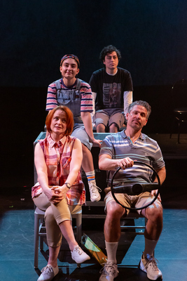 This 100-minute work (no intermission) changes dramatic styles at the drop of a hat, randomly bouncing from easygoing satire to angry polemic to an immigrant's tale to a father-son contretemps to a series of factoids about poet Carl Sandburg's compilation of American folk songs known as "The American Songbag," snippets of which are performed by the cast members and an onstage band that features a fine if underutilized lead vocalist (Hannah-Kathryn "HK" Wall). Sandburg described the popular collection, originally published in 1927 and still available for purchase in a 1990 edition with a forward by Garrison Keillor, as a "ragbag of stripes and streaks of colors." That's a pretty apt description of The Greatest Hits Down Route 66, directed by Sarah Norris, that incorporates occasional excerpts from "The American Songbag," arranged for the production by Grace Yukich and Jennifer C. Dauphinais. The show itself is neither fish nor fowl, neither a play with music nor a musical with a dramatic underpinning. Indeed, there is precious little connecting the two components that have been collectively charged with the task of telling the tale of one American family taking a road trip from their suburban Chicago home westward to Los Angeles and back again. The year is 1999. When we first meet the family, they are gearing up for the trip, whose itinerary has been carefully laid out by the patriarch known as "Wolf Man" (Kristoffer Cusick). His intention is to follow as much as possible the highways and byways that mark the remains of the historic tribute to life on the open road, Route 66. The rest of the family consists of the matriarch known as "Mother Dearest" (Erika Rolfsrud), their eight-year-old son known as "Wee One" (Kleo Mitrokostas), and Wee One's 17-year-old brother known as "The Eldest" (Martin Ortiz). If you imagine that these cartoonish character names mean you're in for a satire of the suburban American family, you'd be partly right. At times, the four do seem to have been drawn from the same inkwell as, say, "The Simpsons." But during the journey in the family's Dodge Caravan (depicted by a set of packing cases and a couple of chairs by set designer Anna Kiraly, who also provides video projections of several stops along the way), we find more than one tale driving the action. For in between the comic bits, this is also a more serious play, often told in fragments, about challenging relationships between fathers and sons, about the experiences of Wolf Man's immigrant Mexican father, about prejudice and the impact of white privilege. Each of these dramatic scenarios gets its own piece of the action, along with interpolated bits of analysis of the selections from "The American Songbag" that are performed at various scattershot moments in the play. Throughout, a narrator (Joél Acosta) serves as our guide and occasional cheerleader, who aims at garnering audience participation. Doubtless, the play has a lot to say about many significant issues in what often has the feel of an autobiographical expedition, but The Greatest Hits Down Route 66 is both too much and not enough of a trip down the pot-holed highways and byways of life.