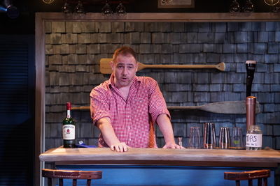 Mellamphy plays ten characters, but most of the time he's Tim Finnegan, a fortysomething Irish-American unhealthily self-conscious about his immigrant status as he tends bar at a welcoming little pub in Amity, Massachusetts (Ann Beyersdorfer's cozy set is lavish with detail, from the tambourines on the wall to the chalked draft beer list, including Dusty Rodent IPA, a name which will actually figure into the narrative.) A couple of tables are visible, populated by audience members, and if you're lucky you may even get Tim to serve you a mocktail. He juggles cocktail shakers and beer and whiskey bottles like an expert mixologist and, unlike most expert mixologists, samples an ample amount of his own product. "Thriller in rhyme"? Noone's rhymes are, as in contemporary songwriting, approximate and falsely accented (missus/ambitious, am/AmeriCAN, bum/individualisUM), and for long stretches you may not hear them at all. Part of that may be Mellamphy's brogue, which runs toward the extreme. Unfortunate, because we know from his portrayals of the nine other Amity residents that he excels at dialect, and he might want to dial this one back a tad. No argument about the thriller part, though: It unfurls gradually, but when the thrills come, they pack a wallop. There's violence of various varieties and an ingenious final twist where the worst of that violence is engineered by someone you'd never suspect. Tim runs in many directions. Ostensibly a writer, he hasn't written much–because, he explains, he's too exhausted from his part-time bartending gig to indulge in further storytelling at home. That home's a wreck of a shack, a pimple on the face of this well-to-do island, and his native-born wife wishes he'd work harder to get them out of it and into a more functional domicile, especially now that they have a young son. So he unenthusiastically takes another job. It's supposed to be painting houses, but mostly it's chauffeuring the undocumented immigrants doing the actual painting. Concurrently, he learns from the friendly local bartender about a newly arrived millionaire, a "coyote" who smuggles those immigrants across the border and incurs high-interest debt from them. And that triggers an idea in Tim: These illegals, he knows where they live, when they're not home, and that they don't have bank accounts to shelter all the cash they're accumulating. Maybe he could rob them? And maybe, given that they're illegals, on the sliding scale of present-day morality, he wouldn't be committing that much of a crime? He's doing it for his wife and kid, he rationalizes; and furthermore, though Tim doesn't say it, among the infusion of undesirables rushing up from the border, he's establishing his superior position in the immigrant hierarchy. The local us-versus-them dynamic is already fraught, a young Irish kid having recently killed himself while driving drunk and plowing down a Colombian worker, who's recuperating and will, Tim suspects, reap a bounty of insurance and workers' comp from it. Immigrants, he figures, they spoil everything. Oh, but not immigrants like me. Meanwhile, Tim's marriage is kind of falling apart, while his environmentalist mother-in-law is making a spectacle of herself chaining herself to a sycamore tree, his married-cop brother-in-law is carrying on with an attractive illegal, and the friendly bartender is demanding a cut for assisting Tim's steal-from-the-poor scheme. Local politics intrude, too. It's a full plate, but the main dish is: How will Tim build up his self-respect, and how will his actions hurt others in the process? As the need for money drives him to darker exploits, The Smuggler whips up an indictment-of-capitalism fury that borders on the Brechtian. The smuggling and exploitation of the border crossers gets a little lost in the flurry of subplots, but we never forget we're in a land where the dollar rules, and the pursuit of it triggers human conflicts that society will forgive, because in the long run they're good for business. We like Tim, but we get uncomfortable with the moral compromises he's making to get what he wants. Would we make them? You may argue about his self-righteousness and self-justification all the way home–that's moral ambiguity for you. But you'll probably agree on the virtuosity of Mellamphy, who goes from charming to personable to menacing to offensive, and Irish to Brazilian to New England accents, on a dime. He interacts deftly with the audience, shuffling into the house and back, and looking you right in the eye, just like Tim would. Michael O'Connor's expressive lighting helps, as does Conor Bagley's fast-paced direction, as does Liam Bellman-Sharpe's sound design, with a heavy dose of Frank Sinatra: Tim likes the classics, and likes to sing hoarsely along. Be sure to read Noone's program note, which tells of a border crosser whose coyote told her, just as she made it over, to lie down and close her eyes, because "when customs and border control survey the field they use flashlights and if your eyes are open the light reflects off them and that's how they find you and arrest you. I think the fact she was told she was safer with her eyes closed can be measured as a metaphor and an illustration of how we are dealing with immigration issues in America today." There is much food for thought in The Smuggler, and much of it leaves a bitter taste. But you'll be glad you partook. The Smuggler