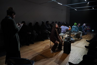 With such minimal space between actors and audience, the very strong ensemble of director Liz Peterson's world premiere production presents an appropriately discomforting 80 minutes of theatre. Scenic designer Josh Barilla places five chairs in the otherwise bare playing space. A slanted seat, a spiked back, and other barricades suggest the public fixtures designed to prevent anyone in need from having a comfortable sleep on them. With a mixture of stories taken from the playwright's years of experience volunteering within the shelter system, Sheltered is structured in a manner similar to Greek drama, with a small chorus of women commenting on their everyday survival techniques while trying to find some stability in their lives. "You gotta try pretty hard not to see me at all," advises a chorus woman (Joyah Dominique) at the outset, a commentary on how decreased funding to resolve homelessness results in increased visibility of those who may have suddenly found themselves unemployed, been slapped with exorbitant medical bills, or have run out of other people's couches to sleep on after escaping an abusive situation. Another chorus woman (Madelyn Chapman) describes the effort needed to look nice and blend in so she'll be offered a free sample of a snack at the supermarket. Another (Claudia Thiedmann) endures the frustration of trying to find a place that will cash her meager paycheck without ripping her off. Another (Kassandra Cruz) talks of finding a sympathetic bus driver who won't expect sex in exchange for being allowed to ride in the back all day and get some warm sleep. The choral leader, in a way, is Cassie (Almeria Campbell), a mentally challenged storyteller who introduces us to the play's main setting, a church basement that holds a daily lottery where winners can spend the night on one of their limited number of cots before waking up to a Pop-Tart breakfast. Martha (Jess Salgueiro) is one of two volunteers who spends the night taking care of any disturbances that may arise. When a pair of police officers arrive to investigate a 911 call, one complains that there are people scamming the system for free handouts. "Be a nice trick, wouldn't it," says the college educated Penelope, "tell a fake homeless woman from a real one." "I have a master's degree and I have not showered in three days," she notes after once again being told she's overqualified at a job interview. The central story involves Martha's hope to find her missing mother Helen (Monica Steuer) while volunteering at the church outreach center and convince her to live in her home. Some may see Helen's refusal to go with her daughter as her taking advantage of resources that might be used to help someone else, but there are other issues at hand. "Half of these women have family right here in town," says Helen. "Some of them, their family doesn't want 'em, some of them don't want their family." While I'm no expert on homelessness, my years working in volunteer relations at New York Cares offered me many opportunities to speak with people in the shelter system, both workers and their clients. The play's situations and Wiley's dialogue absolutely ring true to me, especially when an oblivious, well-off woman (Cruz) who hasn't made any effort to find out the outreach center's actual needs, comes in unannounced with a collection of used designer clothes to donate for a tax receipt. The play's strength is in its bluntness. There are no pleas for sympathy, just matter-of-fact depictions of reality. Though you might think of the women experiencing homelessness as bonding into a community, in one telling scene, where they're eating their slice of Velveeta on white bread lunches, it's brought up how they are in competition with each other for whatever services are available. The play is informative without being overly didactic, making it all the more effective theatre. General admission seating for Sheltered is offered on a sliding scale, starting as low as $25. However, the cell theatre's website states that they are prepared to offer seats to anyone who is experiencing financial hardship and finds the ticket price a barrier to entry. Sheltered Through February 9, 2025 the cell theatre 338 W. 23rd Street Tickets online and current performance schedule: thecelltheatre.org