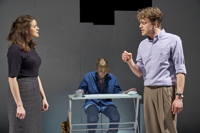 Sister's narrator and central character Michael (John Marshall) in fact could be the literary doppelgänger of Menagerie's Tom Wingfield. Just as Tom recounts going much further than the moon in his effort to escape the psychological and emotional grip of his sister Laura, Michael recounts his own retreat from his only sibling Lindsey (Gillian Todd). Similarly, Michael tends to address the audience with Williams-like prose, including monologues teeming with metaphors and dream imagery. Describing his family leave-taking, for example, he says, "My life can be measured in two equal partsthe years spent with her and those spent a vast distance away. She was there and then she was gone, like a dangerous growth one lives with until, for reasons of survival, it must be surgically removed." The plot focuses on Michael's reluctant decision to reconnect with his sister after nearly eighteen years. Lindsey, who was diagnosed as an infant with profound developmental disability and schizophrenia, caused the family all manners of distress and disruption. In the intervening years, Lindsey has moved from one toxic institution to another, but she is now living in the Sisters of Mercy Home for Women under the loving care of her legal guardian Sister Mary Francis (Susie Duecker). Lindsey has also become a first-class artist, and her paintings are fetching huge prices and attracting high-profile curators for a major exhibition. Michael is in the midst of a personal and professional crisis, and he is not outwardly impressed with his sister's accomplishments. He agrees to drop by Lindsey's new home, though, for the chance to visit Sister Mary Francis, his childhood friend and youthful sweetheart before she answered a higher spiritual calling. At the facility, old wounds are reopened, painful memories are revisited, and religious faiths are tested. Unfortunately, the play is surprisingly unmoving and frustratingly uninvolving. Chief among the problems is the dialogue, which is simultaneously overwrought and underwritten. Michael is in an almost constant state of indignation and rage, and there is not sufficient character development to understand why he would so cruelly abandon his disabled sister. The play is infused with references to religious piousness, and there are required leaps of faith to accept that Lindsey, who is also apparently a gifted psychic, could suddenly become a prestigious painter simply because her father was. (Since the audience only sees blank pages, this takes even more unquestioned acceptance.) There is not enough character development to make Sister Mary Francis more than just a fairly typical stage nun. The actors under the direction of Peter Dobbins work valiantly, but they have not yet plumbed the characters for varying levels of subtlety. They tend to overdo the big confrontation scenes and harrowing flashbacks. As a result, there are not enough moments of quiet reflection and compassion to show how this trio of damaged souls must inevitably reunite. The scenic design by Daniel Prosky consists of a series of white platforms. The impression is canvas-like and allows for the fluid and artistic presentation of scenes from the characters' interweaving pasts. Yet, it is also severe in its whiteness (and this is augmented by Michael Abrams' stark lighting), and it does not generate warmth and sympathy for the characters or their plights. (Allusions to the 1990s, when the play is set, are provided by Jake Posner and Ian Wehrle who respectively designed the costumes and sound.) The most disappointing aspect of the play's production, however, is in its principal casting decision. As Lindsey, Todd thankfully does not try to replicate in detail the visible physical traits and vocal mannerisms of a developmentally disabled woman. Doing so would have been hugely off-putting. Yet, in recent years there has been some progress in giving the many capable and talented disabled actors in New York City alone the opportunities they deserve. How disheartening then that the small ensemble does not reflect greater diversity. Blackfriars Repertory Theatre is the main producer of Sister Calling My Name, and the company is expressly committed to "theatre dedicated to the human drama." Ideally, future productions will be more inclusive and not just in name only.