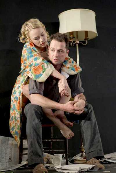 That's the biggest surprise of the evening, in fact, given that the director is Sam Gold. This justly acclaimed on-the-rise helmer has, over the last several years, delivered bravura stagings of amazingly diverse works such as The Black Eyed, Dusk Rings a Bell, and especially Kin and Circle Mirror Transformation, nearly all of which have capitalized on mining enormous emotions from scenarios seemingly too ordinary to contain them. One would have every right to believe that giving Osborne's opus exactly the same treatment would be the easiest way to blow away the dust that's accumulated during more than five decades of increasing openness and disaffection in society, whether in the U.K. or the U.S. But this approachor any approachto the play only works if the target of the rage is unmistakable. We know almost immediately from our exposure to Jimmy Porter (Matthew Rhys), the 25-year-old malcontent living in a one-room Midlands flat, that the stifling one-dimensionality in which he spins is driving him over the edge. As this attitude is personified by both his wife, Alison (Sarah Goldberg), and their live-in friend, Cliff Lewis (Adam Driver), Jimmy is constantly surrounded by representatives of what he hates. That he's stuffed in a cramped attic room in an apparently awful building only makes matters worse: His home is his coffin, and he knows it, but lacks the power, or at least the spiritual impetus, to make any but the most superficial changes to his situation. (Jimmy eventually drives away Alison and replaces her with her friend Helena Charles, played by Charlotte Parry, which is at best a temporary fix to his permanent problem.) Gold, however, has not staged Look Back in Anger to highlight any of Jimmy's struggles. What he's done instead is applied a rigidly nonrealistic filter to the proceedings, and in doing so made it impossible to absorb or even accept the atmosphere and animosity that Jimmy should emit like sweat. The chief feature of Andrew Lieberman's set is a stage-spanning, featureless black wall, in front of which are placed a bare modicum of set pieces (a dresser, a mattress, a table, a couple of chairs, an ironing board, and so on). There are no decorations, no decorative absence of decorations for that matter, no windows, and no doorsthe actors enter from an emergency exit in the house, making a grandly noisy show of doing so while Mark Barton's lights remain at full brightness (they eventually dim). When the performers exit, they either sit motionless in the recessed stage-left steps or perch on railings in the auditorium and watch the action unfold. At one point, Driver even dangles his feet over the lip of the stage, further acknowledging (as if it were necessary) that this piece is an artificial construct and hardly something to be taken at face or heart value. Such tricks sap every drop of urgency and immediacy from the play, and prevent you from ever getting even partially lost in the characters' troubles. When it comes to working with the actors directly, Gold of course excels, and watching them lay out the pieces of this puzzle is where this production is most satisfying. Rhys is certainly a magnetic anchor for it all, approaching Jimmy's vituperative dialogue with an acidic ache that makes you feel his troubles intellectually; Driver and Goldberg's energized flatness, and Parry's erotic antagonism, are likewise proper choices that would usually be quite effective. But without the claustrophobia of an realistically oppressive setting, creating the sense that Jimmy in particular is trapped within a maddening corner of the mundane from which escape is impossible, the conflict has no chance to ignite. This trouble is compounded by some destructive edits to the script that have "streamlined" it by excising a fifth character. True, Alison's father does not appear onstage much. But as the sole person with a solid claim to being sympathetic, he acts as both a moral anchor and a representative of the outside world we otherwise never see. By removing the only character representing a different variety of change, and someone who offers a perspective on the central plot that forces us to view its participants in a slightly different light, things get mired in impenetrable gloom, and push too hard the too-modern notion that everyone's ills are someone else's fault. So, no, this isn't really Look Back in Anger. It's an amalgam, an approximation, something lesser than the original that only hints at the power Osborne's signature play can have at its best. The trick with it, and so many plays like it, is to balance and contrast the heightened reality of its subject with the actual reality of its presentation, resulting in something more than either could conjure alone. Gold is usually expert at that sort of alchemy; why he didn't attempt it here is anyone's guess. But because he hasn't, the screaming, the moaning, and the insults that are supposed to be the cry of a tormented transitional generation end up being much ado about nothing. That's another fine alternate title for this play, come to think of itis it taken?