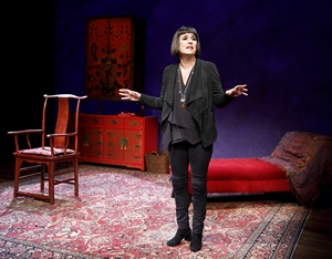Doesn't sound like a million laughs, does it? Yet In the Body of the World, for all its harrowing memories and moments of pain, misery, and uncertainty, is surprisingly lively and even jocular in moments, a no-holds-barred sharing of one woman's story. Ensler tries, not altogether successfully, to merge the suffering of the Congo victims with her own, to find commonality in their humiliation and victory over it. But those women get pushed aside a lot, because she's so preoccupied with taking us to doctor's offices, hospitals, the Mayo Clinic, and her loft (designed, rather skimpily, by Myung Hee Cho) where she recuperates. We also get pre-cancer autobiography: an unhappy childhood with a harsh, abusive dad and a glamorous, distant mom; an adolescence as one of the least popular girls in high school; weed-infused college days; bad marriages; an adopted son only eight years her junior; a sister she long hated who helped nurse her and turned that enmity around. There's a lengthy section on fifth grade, of all things, because she was officially classified as one of the stupid kids and evidently never got over it. We know you're not stupid, Eve. She also riffs on current political bĂȘtes noiresthe Kochs, Dreamer abuse, Trump, of courseprobably because she knows most of this audience is on her side. And when she finally returns to Congo, at the last minute, there's a splendid coup de theatrethe set designer's, and it's so stunning that you may not notice how little it has to do with everything that preceded it. She uses her hands a lot, possibly too much, and she indulges in rhetoric that feels affectedlike repeatedly asking, "Did I tell you that . . . ?" when she knows damn well whether she told us or not. And at one point, non-fans of this sort of thing are hereby warned, you will be asked to get up and dance. Yet such is Ensler's conviction and persuasiveness that most of this reserved Manhattan Theatre Club audience, including me, got up. She has an uplifting and often riveting tale to tell, and, aided by Diane Paulus's focused direction, she tells it sharply and movingly. Particularly affecting are descriptions of a good doctor, one who looked her in the eye and let her know he really cared and was "the handsomest doctor in the world," and a terrible one, who caused her excruciating pain and hardly said a word. (She reenacts this. Boy, can she scream.) She meditates entertainingly on denialhers, while contemplating how this thing may have entered her body, and ours, for being aware of multiple global disasters but pushing them away. She comes up with ingenious analogies: The diagnosis happened almost simultaneously with the Deepwater Horizon oil spill, and she sees parallels. She notes that "uterus" and "hysteria" share a Greek root, and gets a lot of mileage out of that. And she takes some unexpected side trips. What's the Muhammad Ali-George Foreman bout doing in a show like this? You'll find out. Ensler likes being up-front and confrontational, and likes shocking her audience. You'll see more of her body than you may want to, and though we can guess that that Louise Brooks bob of hers is a wig, it's an uncomfortable moment when it comes off. But that's not as shocking as her stories of what some of those Congo women endured, and she might have had an even stronger evening if we heard more about them. What's there is pretty strong, though, and a testament to how our survival instincts can pull us through, aided by friends, other inspirational heroes (like Mama C, who runs City of Joy), and especially the anonymous little people, many of them volunteers, who toil in the trenchesCindy, who helps Ensler fart when her colon has given out, true story, is an unsung superwoman. Autobiographical as In the Body of the World is, one can well envision Ensler releasing the rights and letting other women perform it. She can be guilty of self-overindulgence, and sometimes she tells us more than we want to know. But it's a story very much worth the telling.