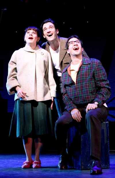 This will be, for those at various stages of involvement, the culmination of many dreams. This is, among other things, the first Encores! production slated to run two weeks, through February 19, an admission that there's interest (or perhaps a plan) for this show that transcends the typical. Then there's that this one is, quite unusually, being performed essentially whole, with director James Lapine (also providing the "concert adaptation") not hacking and slashing the book in favor of a heightened focus on the songs. And, oh yes, this is also one of the most lavish mountings of the series to date, with set (John Lee Beatty), costume (Ann Hould-Ward), lighting (Ken Billington), and projection (Wendall K. Harrington) plots so elaborate, that they all look like part of a brightly wrapped, ready-to-transfer package. Beneath all that surface slickness, however, is a pervasive lifelessness that keeps the combustible elements from fully igniting. You first sense it in the overture, which despite Jonathan Tunick's high-octane orchestrations sounds, under the ministrations of music director Rob Berman and the Encores! orchestra, more like a wall of horn-heavy blare than a searing evocation of the story's conflict of Broadway art colliding with Hollywood commerce. Then, when we lope into the prologue, it's a sedate, crisply informational affair in which the crooning chorus members appear more interested in staying out of the way of the lickety-split-changing LED backdrop as it displays its era-defining headlines and myriad Photoshopped snapshots than they do musing on the fluid and flummoxing nature of time. Already, something's wrong. The unease continues as the action transitions into a reception celebrating the first major studio release from an up-and-coming producer named Franklin Shepard (Colin Donnell), a gifted composer gone movie-mainstream. He's rich and happy or, you might say, rich and "happy," with a glittery wife named Gussie (Elizabeth Stanley) he can't stand, a mistress he's content to ignore, and a best friend named Mary (Celia Keenan-Bolger) whose idea of a party is getting smashed and insulting her host. Here, too, the chemistry is off, with the exchanges steaming rather than crackling, the staging indifferent, and Keenan-Bolger utterly unable to convince as, and even seeming to psychologically rebel against, the middle-age malcontent who's got a Dorothy Parkerstyle retort for every Southern California bromide she encounters. Moments like these, dotted with rocky pacing and unsteady delivery, are plentiful as we travel ever further back to meet Frank's estranged songwriting partner, Charley (Lin-Manuel Miranda), ex-wife Beth (Betsy Wolfe), and producer-discoverer Joe Josephson (Adam Grupper), who have all played key roles in making Frank the artist, and then the shell, he became. Lapine and his cast have consistent difficulty connecting with scenes and Furth's sometimes too-arch dialogue, often polishing up their smoothly moving exteriors but seldom peeking underneath. This problem is only amplified by the inclusion of so much dialogue you can't see this evening as the kind of music-oriented event most Encores! shows satisfy themselves with being; it plays as if it wants to be the Real Deal, and at that it's too empty to succeed. There are pleasures to be found, of course. Dan Knechtges's dances are refreshingly subtle, for one thing, and as mentioned the show looks terrific. Then there's Sondheim's score, one of unusual verve and bounce as it charts young adulthood's maturation into midlife . It captures the excitement of friendship ("Old Friends"), unplanned independence ("Now You Know"), and burgeoning adulthood (the intricate musical scene, "Opening Doors"), all blended against expectation and heartache rendered both organically ("Not a Day Goes By") and theatrically ("Good Thing Going"). With chunks of music and lyric that constantly reassemble themselves like components in a factory, the songs have no trouble demonstrating the surprising ways the past can inform the future. But for Merrily We Roll Along to work, all the other pieces must be on the same page. Lapine and his cast haven't found sufficient reasons for us to like, or at least sympathize with, the self-involved and self-implosive characters we see, which subverts a story that already trends too much toward a cautionary tale of "selling out." In showing how Frank slowly develops his inner grease, Donnell does more than anyone, and is the only performer whose characterization fully seems to grow in reverse. Coming close are Stanley, sturdy and smoky as other womandiva Gussie; Wolfe, who projects the proper enterprisingly flighty niceness as Beth; and Grupper as a brusque and effective Joe. But Keenan-Bolger's Mary is rollickingly unfunny, landing none of her booze-drenched-yet-parchment-dry quips (and sounding underequipped for her rangy songs); and Miranda, best known for writing and starring in In the Heights, is not a natural nebbish, with his attempts at forcing the issue (particularly in Charley's televised breakdown, "Franklin Shepard, Inc.") and borderline-untrained singing voice making the character look unhinged rather than unappreciated. Things click only really during the final scene. Set on the rooftop of a Manhattan apartment building on the night of the 1957 Sputnik launch, it unites Frank, Charley, and Mary for the first time to gaze at the sky and question what the worldand theywill become in the years they'll witness. Their commemorative song for the event, "Our Time," bursts with near-childlike anticipation, one of the few feelings that Donnell, Keenan-Bolger, and Miranda are all able to project equally well. The scene is not as haunting as it should be, given the ghosts you've seen that they haven't, but it's as fresh and sparkling as the trio's hopes, and after the flat-Champagne feel of the rest of the preceding two and a half hours, that's not nothing. It's enough, in fact, to make you belie