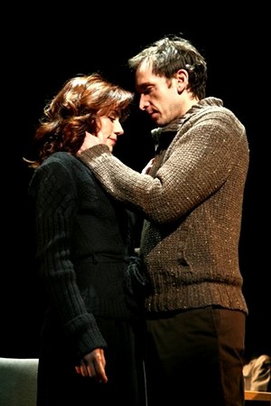 Unfortunately, the performers aren't entirely up to the challenge of Baron's searing examination of human confusion in time of crisis. Kunken and Collins are bright young presences who infuse the funnier scenes and digressions with vivacious life, but become increasingly lost the more the play suffocates in seriousness. Collins recovers in time to deliver a blistering performance in the fraught final scene, the only one in which the play embraces convention long enough to topple it, but by then the damage is already done. Arison captures Anil's passionless stoicism, but too effectively details his indifference: We can never understand exactly what Carolyn sees in him. That might well be the point, that in circumstances like these we never see others - or ourselves - clearly. If so, it's too well made, adding a layer of visual obviousness to a play and production otherwise steeped in the honest woe we inherently respect but don't openly recognize until it's too late. While sharper performances would cut deeper, it's perhaps just as well that these actors dull the blow. It's hard enough to maintain footing on solid ground with these characters riding on a wave of pain so convincing, it often seems as though it will sweep you up right along with them.