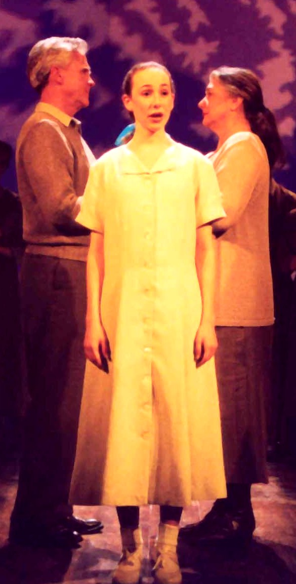 George and Emily's parents appear easily young enough to be their children, which throws the play significantly off-kilter. As good as Ligon and Andres are, there's no real sense of loss in the play's heartbreaking conclusion. It's impossible to completely divorce yourself from the difference between how Wilder describes his characters (even giving their exact ages); what happens to George and Emily seems more of a natural course of events than a tragic occurrence. Emma Orelove is another problem. She's a ninth grader who has been cast as the Stage Manager, who narrates the play and even participates in a few scenes. Orelove's lines sound patently labored, as if she doesn't understand most of what she says, and she is never believable as any inhabitant of Grover's Corners she portrays. (Her line about marrying hundreds of couples rings particularly false.) More damaging still, her performance is broad and unwelcoming, bereft of the warmth for which the role cries out. She brings cuteness but no authority to her role - there's little evidence why she should be managing anything. Campbell's music is attractive, but occasionally overpowering; Orelove in particular can almost never be heard above it. Too often, the tunes intrude on the action, pushing too much what Wilder made sure the audience would be able to decide for themselves. Yet, despite his general respect for Wilder's work, Cummings isn't above adding a scene of his own. Informed by Campbell's music, Cummings's production begins with all the actors onstage, speaking parts of each others' lines in a tapestry of tune and dialogue preceding the Stage Manager's opening speech. The sequence adds nothing to the play but a couple of extra minutes. Wilder's words are simple, beautiful and heartfelt. Cummings may not have altered much of the text, but he would have done well - in every way - to let Wilder speak for himself.