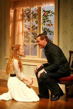 Her loved ones, of course, are not so lucky. Her parents (Betsy Aidem and Michael Countryman) are one issue, but the young sailor (Darren Goldstein) she marries and soon abandons to the wonders of potential immortality is something else entirely. Mary Rose's trials are juxtaposed with those of a sad seaman (Richard Short), who after World War I becomes interested in the house that belonged to Mary Rose's family some three decades earlier, and who has an inexplicably strong connection with its prevailing ghosts. (Set designer James Schuette and lighting designer Kevin Adams capture all the right storybook qualities in the ethereal drawing room that is the play's primary locale.) One would think that Mary Rose's physical, spiritual, and temporal separations from her family would speak to anyone on the most basic of levels: If you're the only one capable of living forever, what does having another's love really mean? Yet Mary Rose's vanishings, reappearances, and temptations, with their psychological ramifications deconstructed in Dullea's lines rather than Howard's performance, are dramatically inert. They call far more attention to the suspense and confliction missing than the tinkling underscoring Barrie's stage directions add.