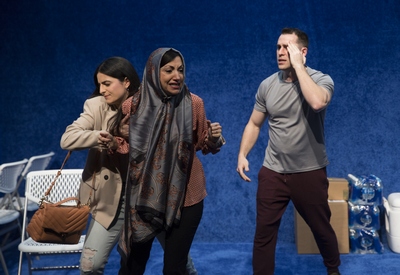 This diatribe of a play, a production of Noor Theatre, a company that is dedicated to supporting the work of writers of Middle Eastern descent, is about a star quarterback's decision to "out" himself as a Muslim by praying during the Super Bowl. Overall, First Down, directed with great intensity by Johanna McKeon, comes across as both an expression of long-suppressed anger, frustration, and shame felt by its lead character, and a manifestation of the playwright's own self-described role as a "disruptor of all things Dominant-Culture related." The disruptive fury is being unleashed through and by pro athlete George Berri (Peter Romano, giving an appropriately unbridled performance). George is a Lebanese-American Shia Muslim by birth, raised in Butte, Montana, by immigrant parents who, like many in their position, wanted their son to grow up as American as apple pie. George has obliged, and in exchange for giving up his cultural and religious heritage, he has draped himself in his All-American looks, gone to Notre Dame, and is now on the cusp of football fame as the presumptive winning quarterback at the Super Bowl. When we meet George, he is at the tipping point of his identity crisis, which he subsumes more generally into the broader issue of Islamophobia within the United States. His solution to both is to offer up a Muslim prayer during the playing of "The Star-Spangled Banner." Given his popularity as a sports figure, he expects his action will lead to the kind of public acceptance that one of his heroes, the British soccer star Mohamed Salah, has had. "Because of him," George says of Salah, "Muslim hate crimes dropped; those white people are saying that Islam is compatible with British values." First Down is laid out in three long scenes, all of them taking place in a locker room the evening before the big game. The first section of the play consists of an increasingly strained conversation between George and the team's coach, Bill Fitzgerald (Larry Bull), for whom the Super Bowl is the payoff of his career. For George, however, what matters most is to let the world know who he is. Bill tries to be supportive of his star player, but he wants nothing to disturb this all-important game, a sentiment he shares with George's long-time friend and agent Marina (Olivia AbiAssi, savvy and confident), who is also an Arab American, though, pointedly, a Christian. Marina shows up after receiving an email from George outlining his plan. "We got a call from 'The Tonight Show' for an appearance," she tells him. "GQ wants to schedule a shoot with a feature article. SNL expressed interest in you hosting. And are you completely insane?" When neither Bill nor Marina is able to convince George to hold off for another time and place, they are joined by George's mother Hana (Hend Ayoub, giving a terrifically moving performance). With the arrival of Hana, the middle section of First Down accomplishes what all the shouting fails to do, which is to connect heart-to-heart with the audience. Much of the conversation between Hana and George is conducted in Arabic, with no translation provided until near the end of this scene. Yet, through intonation and gestures alone, we have little trouble understanding the story that unfolds, of the heartbreaking difficulties Hana and George's father faced when they first came to the United States, and why it is that she wants George to reconsider his decision. This section of the play is beautifully written and acted, as it lays out the terrible price that is paid by so many immigrants to this country. Yet even as Marina has to lead a deeply shaken Hana from the scene, George's determination is fixed. The entire last third of the play is essentially a tempest of rage, which includes, among other things, a recitation of the names and ages of many of the murdered victims of Islamophobia. It is a lot to absorb, but it also serves as a possibly unintended reminder of other such lists: the names of Jewish victims on display at the Holocaust Museum; the names of Black victims intoned in Janelle MonĂ¡e's song "Hell You Talmbout"; the victims of AIDS whose names appear on the walls in Larry Kramer's play The Normal Heart; and, yes, even the names of the dead from the attack on the Twin Towers. There is no doubting that SEVAN is a powerful and decidedly passionate playwright with a great deal to say about Islamophobia in the United States. But if you want to change hearts and minds, tell George to stay home and send in Hana instead. First Down Through March 5, 2022 Noor Theatre 59E59 Theaters, Theater C 59 East 59th Street, New York NY Tickets online and current performance schedule: 59E59.org