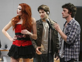 Laughs don't come more readily than sense, what few there are coming only from the tut-tutting title characters who appear in several video scenes to critique the critiques of Owen's work and ensure their own seat at the head of the culture table. (It's not especially trenchant satire, but throw enough darts and you'll hit something, even if you never draw any blood.) With her scenic and lighting designs, Maruti Evans gives the stage an appropriate nightclub chic look, as if suggesting that's where today's superstars are truly born. LaLiberte's has the untamably flawless hair of a supermodel, flame red from root to tip, but possesses no inner fire to match - she's far too convincing as a perpetually unaware celebutante. Janowitz is an impenetrable picture of clueless self-absorption, more moody college student than smoldering genius. Hiltunen and Grodman overreach as two different sides of the same sexually insatiable coin, and the searingly sexy Kaye makes the cagey Maggie insupportably stupid, reciting her lines with all the conviction of memorizing a Lord and Taylor shopping list. I take that back - none of these characters would dare to be seen anywhere quite that gauche. They need the most, and the best, they can possibly get. Because they're rich, they don't typically have trouble unless they create it for themselves. If seeing these people screw up their perfect lives and then toil to get them back to perfection is your idea of a good time, Artfuckers is the show for you. Otherwise, the only ones likely to benefit from it are those who are too important to go to the theatre in the first place.