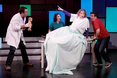The opening number of this evening of unrelated vignettes, for example, titled (seriously) "Push it on Out," is simply a retread of the familiar idea of the husband and wife whose plans for a natural childbirth are abandoned once the contractions start. The travails of a wife who inadvertently shows too much on a widely distributed photo are more than vaguely reminiscent of those Elaine endured on a classic Seinfeld episode. Other mothers and fathers struggle with talking to their children about sex, getting them into the "right" boarding school, coping with thumb-induced dental deformation, and, eventually, sending them off to the prom and then to college. There's nothing here you haven't seen before, in ways at least as entertaining (and perhaps moreso). There are endearing qualities to the show, however. The most outwardly evident is cast member Courtney Balan, a rubber-faced comic, razor-sharp mimic, and exciting singer who communicates a myriad of ages and attitudes, both silly and serious, with the effortlessness with which most people blink. She's the only categorical success, and makes everything with which she participates worth watching and listening to. But creators Sandy Rustin (book and lyrics) and Dan Lipton and David Rossmer (music and lyrics) prove themselves almost as resourceful and likeable once they stop straining to tell jokes and instead take aim at the heart. "Little Boy" is a strangely lovely lullaby that acknowledges adult realities ("Daddy owes me three grand / I'll get it back in fantasy-land") that matter little compared to a newborn's not sleeping through the night. In "Prayer for Ellie," a mother movingly learns to let go when her daughter leaves for her first day of school. An aging father (sensitively portrayed by David Josefsberg, from the original cast of Altar Boyz) analyzes what's made his decades-long romance with his wife work in "A Monday Morning Love Song." And, as creaky as their subjects might be, the boarding school–focused "Interview with a Headmaster" and the mother-and-daughter-face-the-facts-of-life "School Supplies" are two nonmusical scenes that touch with their unaffected sincerity. Instances of sweetness such as these are, alas, few and far between; the comic scenes are significantly less distinctive. There's an intriguing audaciousness to "Wild Romance," in which a dad (played with amusing scorch by Josefsberg) daydreams, with heavy-metal overtones, about the alone time he'll get with his wife while his kids are at camp. But the bulk of the remainder is dedicated to dopey skits and forgettable songs about grandparents who want to get out of babysitting, two gay fathers attempting to satisfy their straight teenage sons' urges, a mom and dad who can't let their daughter's first day working at Subway go unrecorded, and so on. The nonsensical nadir is "Man in a Uniform," in which two women sing of lusting after their sons' British soccer coach for no reason that either the show's overarching theme or good taste can pinpoint. Chris Hoch and Joanna Young round out the talented cast, which, under Jeremy Dobrish's efficient but undistinguished direction, gets as much from what they're given as any ensemble could be expected to. Steven Capone's lean, candy-colored scenic design is attractive but two-dimensional; Emily DeAngelis's quick-change-ready costumes and Michael Gottlieb's lights are acceptable, though the sound design (by Jill BC DuBoff and David Sanderson) is overdone and overloud for the intimate space and material. Chris Kateff and Richard DiBella's projections, which relate a series of iPhone text messages chronicling one boy's upbringing, are smartly handled scene-change distractions. Sadly, getting distracted from Rated P for Parenthood is a lot easier than getting involved in it. The revue format, even when investigating adult concerns, can be emotionally engagingMaltby and Shire's Closer Than Ever, slated to be revived Off-Broadway later this spring, is an excellent modern examplebut it needs to be composed, constructed, and, well, conceived with care if it's to make or have a point. This show's too-frenetic finale climaxes with the cast standing stage center and essentially screaming, "When you turn your phone back on / If you've heard from your parents / Dammit, for the love of God / Return your mother's call!" If you do, chances are she'll have a better moral, and more compelling stories to relate, than any you'll find here.