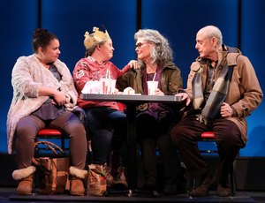 A middle-aged sister and brother, Maggie (Debra Monk) and Jacob (Mark Blum), meet up at LaGuardia Airport, having flown in from their respective homes in different parts of the country. There are headed out to Montauk to bury their father, who died unexpectedly. On their way there, their plan is to reunite with their sister, Amy, who has Down Syndrome and who has spent her life in various state facilities and group homes. Maggie and Jacob were raised with only a vague awareness of Amy in the background of their lives, someone their parents took them to dutifully visit when they were growing up. Now Mom and Dad are both gone, and the older siblings are uncertain as to how they will explain the loss to Amy or how to see to her continued care. In truth, the two of them are pretty uncertain about everything. Both are neurotic as can be, and their conversations are mostly displays of their quirks. It's probably all very serious to them, but the dialog is as eccentrically funny as anything you might hear in one of Christopher Durang's plays peopled with high-strung characters. Added to the mix is Kathy (Vanessa Aspillaga), Amy's effusive primary caregiver and chief protector at the group home where she is now living. Since the group home, and not Maggie or Jacob, is Amy's legal guardian, she will accompany them. And so, the quartet sets off in a rented car down the Long Island Expressway, At the center of it all, Amy is the beating heart of the play. As played by Jamie Brewer, an actress with Down Syndrome herself, Amy may miss out on some of the details. But she is very aware of her situation and of how she was bounced around from place to place before winding up in her current and, fortunately, very happy home, When they stop off at a Burger King, Jacob decides it is time to try to explain to Amy about the loss of their parents. (Their mom died earlier, but neither Jacob nor Maggie had attempted to get in touch with Amy at the time). Jacob's spectacularly inane explanation, involving the use of soda straws and earnest metaphors about eternity, sets Maggie's eyes rolling and is one of the funniest moments of the play. Later, however, when they get to Long Island, and Maggie and Jacob finally reveal their plans for taking responsibility for Amy, they seem far more concerned with assuaging their own sense of guilt than with how they might benefit her. The interplay among the four characters makes up the core of the play. But another important plot element takes us back in time to meet the siblings' parents, Sarah (Diane Davis) and Bobby (Josh McDermitt). We observe them as young, struggling parents of three children. Their scenes, well performed by the pair of actors, take place at a relationship seminar, where they have come in an effort to work out their marital problems. Their troubles are, as we might expect, accentuated by their inability to cope with their intellectually impaired daughter. These are important scenes that complement the main story by helping us to understand their decision to institutionalize Amy. While the playwright doesn't use this as an opportunity to throw around blame, we learn enough about Amy's time at the notorious Willowbrook State School on Staten Island to lend a real heft to the goings-on. (For more about the real Willowbrook, you might want to check out the documentary film, 'Unforgotten.') Amy and the Orphans ends on an up note, with Amy appropriately having the last word to put a coda on this entertaining, provocative, wonderfully acted play, which has been masterfully directed by Scott Ellis. It is a deeply layered work that provides a sobering lesson on how we as a society have too often failed to provide for the needs of individuals with disabilities. In a program note, the playwright talks about how she worked closely with Roundabout to cast someone with Down Syndrome in the role of Amy, making sure, as well, that her understudy was also someone with Down Syndrome. In this case, the understudy is a male actor, and should he appear instead of Ms. Brewer, the character becomes 'Andy.' This is the kind of pre-production sensitivity that one hopes will be the starting place for casting any play that includes characters with disabilities.