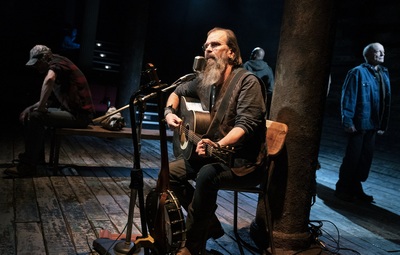 While the splendid cast members fully commit to being the conduits for the real-life characters they portray, as well as to their work as a tight-knit ensemble, I would be remiss if I neglected to name them. They are Melinda Tanner, Thomas Kopache, Michael Laurence, Michael Gaston, Amelia Campbell, Mary Bacon, Ezra Knight, and Deirdre Madigan. Having Steve Earle on hand as musician is decidedly a bonus. While the songs he performs do not speak directly to the content of the play, they serve well in bringing out a strong sense of the community and, especially, of their deep roots in the region. The tunes are infused with the time-honored sounds of folk music, hymns, and songs of labor union solidarity (the audience is encouraged to join in on one of them) that hearken back to the days of Woody Guthrie. Apart from the pleasure of watching him perform, Earle provides a fitting backdrop to this original and compelling work.