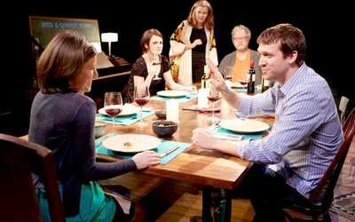 Foremost among the things that make it work is Raine keeping her writing intently focused on what the characters are incapable of saying to one anothereven those who are physically able to hear. To this end, she tweaks the expected concept a bit. Billy (Russell Harvard, from the film There Will Be Blood) was born deaf but raised in a hearing family that wanted him to fit into their world. The family of his new love interest, Sylvia (Susan Pourfar), is deaf, but she can hearif only for now, as a genetic defect is gradually robbing her of that ability. Their relationship develops slowly (she has a boyfriend, he's never had a girlfriend), but it picks up a dangerous new momentum once they meet each other's families and see what they've been missing their whole lives. We never meet Sylvia's parents or siblings, though we see how they, and the others in Sylvia's all-signing circles, impact Billy, who never before understood what an outsider he was. But Billy's family is front and center throughout: His father Christopher (Jeff Perry) and mother Beth (Mare Winningham) are authors; his sister Ruth (Gayle Rankin) and brother Daniel (Will Brill) are back living at home, she because she's making too little money singing opera in pubs and he because he broke up with the girlfriend he'd been living with; and they're all outspoken. It's immediately obvious that these people have spent decades talking over each other, leaving no outsider a definable placewhether Sylvia or even Billy, who was inculcated into their collective (and, to their minds, the larger world) by never being taught how to sign. It doesn't take long for Billy to want more, and he's willing to go to extravagant lengths to achieve it with Sylvia, who in turn isn't sure she wants to hang on to everything she has. The more able the two are to speak to each other, with either their mouths or their hands, the less they're able to actually say. Two gorgeous keystone scenes underscore this: the dinner in the first act, when a newly signing Billy must translate for the struggling-with-lip-reading Sylvia, and a second-act glimpse inside the bedroom they later share, where they discover how much they're threatening to move past each other as they try to move closer together. Raine errs occasionallyRuth is a bit underdeveloped, and forcing Daniel into a near hearing impairment himself as a result of voices in his head is stretching thingsbut even her mistakes help shore up the underlying theme about the universal importance of acceptance among loved ones. (And no, Billy isn't just a teacher in this regard.) The functional dysfunction of Billy and his family reinforces and amplifies the pressures Billy likely faced in being different, and the many scenes about them all arguing over topics as innocuous as nuts, kimonos, mystery novels, and so on catapult you into the thick of their unique bonds in a way many playwrights would struggle with. This provides fertile ground for Cromer, who does his typically excellent work here, if operating in a bit lower key than usual. The few flourishes come from the inventive use of Jeff Sugg's projections, which sometimes display surtitles but between scenes rollick with animation of the lyrics to songs that cover set changes. (Scott Pask's lived-in living room set is as tense and cramped as the feelings it contains, and it's starkly lit bit Keith Parham.) The most startling scenes tend to be the most still, with the aforementioned dinner a symphony of subdued stares and clenched attitudes, and the finale so drenched in pain that the characters' explosive inertia threatens to creep into your own bones. But the pace never flags, and the two-hour-plus running time feels, if not quite breezy, then just right. The same is true of the performers, who emit no fireworks but excite just the same. Harvard makes a firm but delicate transformation from passive boy to active man, letting you see how a determined individual can emerge from a faceless crowd. Undertaking a similar journey in reverse, Pourfar is at least as involving in the way she shrinks Sylvia's worldview to a more manageable pinpoint as her own senses abandon her. Brill bracingly balances Daniel's love for his brother with his own needs, as does Winningham, who crafts a magnetic version of subtle selfishness to contrast with the more overt examples in her brood. Perry is persuasive as the braying patriarch, and Rankin finds an appealing sensitivity (if sometimes too much of it) in Ruth. But dwelling on any one person is ultimately counterproductive. As its title suggests, Tribes is as much about taking sides as it is finding out who you are, and is thus most memorable when it's at its most crowded and chaotic. The instancesand there are quite a few of themwhere the various languages collide with the more threatening force of meaning drive home how difficult it can be to say what you think and feel even when you have a willing audience. One suspects these characters will never be completely comfortable doing that, regardless of the words or tools at their disposal. Raine, however, manages to deliver her own messages about working around these deficits loudly, clearly, and beautifully.