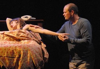 It also gives undue weight to his character, the least interesting of the three and the one with the most peripheral grasp on the action. Bauer expertly manages Ned's progressive breakdown, nurturing it from a vague suspicion into a full-out psychosis with just the force of his voice and an increasingly scattered physicality. And Mortimer is so prim and so precise that, even against your own suspicions (and Ned's) you can't help but believe her insistence that she's not stealing her husband's life away. Together, the two form an exacting portrait of a marriage on the rocks with a twist; their intertwining stories need no additional help to blossom. Cake is as solid as he can be as Dale, whose purpose is as a double-edged confidant for the struggling couple. But Butterworth overemphasizes his importance as an observer, and doesn't let through enough of the lives he's observing. The character is so underwritten, a cipher whose admissions of having a wife and kids could just be one more ploy for attention, that there's not much for Cake to do but push Ned and Joy closer together, yank them farther apart, or turn toward us to fill in the gaps. That there are any that need patching is itself a minor mystery. Joy and Ned, and the actors playing them, have such bubbling chemistry, they can transform a discussion about Joy's midnight lemonade binge into the tangiest of marriage-therapy fodder. Was it an alibi to cover up her latest theft of his property? Does he believe her? Why or why not? Butterworth raises enough tantalizing questions in these five minutes to power an entire play. He doesn't need help from Dale, or anyone, to make the wounded lovebirds of Parlour Song sing their song of sorrows lost and found.