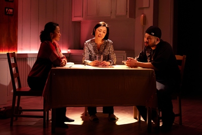 Opening tonight as the first live, in-person production by the Ensemble Studio Theatre since the pandemic shut-down, what you are now might be thought of as a meta-memory play. We are pulled into the memories of a driven-to-succeed young research scientist who is striving to find the magic bullet that will somehow erase, or at least ease, her mother's traumatic memories of the chaotic violence that marked her life in 1970s Cambodia before she was able to flee to America with her young son and unborn daughter. It is that daughter, Pia (Pisay Pao), who is the researcher, fascinated with the brain's capacity to link the cognitive with the emotional in order to create seemingly unbreakable long-term memories that shape who we are and how we act. But while she sees herself as being responsible for "fixing" her mother, Chantrea (Sonnie Brown, thrillingly inscrutable), Pia never recognizes her own trauma that comes from failing to live up to an unreachable level of perfection she imagines her undemonstrative mother expects of her. While it is the difficult mother-daughter relationship that lies at the core of the play, there are three other significant characters. One is Pia's laid-back brother Darany (Robert Lee Leng), older by a few years but, at least in Pia's eyes, another responsibility for her to take on. They are joined by Siobhan (Emma Kikue), racially mixed of Cambodian and Irish-American parents, who becomes involved with Darany and who also urges the recalcitrant Chantrea to publicly speak about her past. And, finally, there is Evan (Curran Connor), who is white. Evan is friendly and outgoing, and a calming and romantic presence in Pia's life. Looking at the make-up of the play's characters, you can rightly guess that there is a great deal of complexity being presented in just about 90 minutes. Remarkably, the playwright and director Steve Cosson are able to find the time and space to explore each relationship and interaction, so that (almost) nothing seems forced. The one exception is a plot strand involving one person's status as an undocumented immigrant, something that interferes with the delicate balance in place and which might better be explored in a separate play of its own. Otherwise, what holds the threads together is the time-shifting itself, which establishes delineated scenes with mostly two-person interactions going on at any time. Yes, we are obliged to reassemble the pieces into a logically sequential order, but patient attention makes this a manageable and worthwhile task, especially with the strong performances all around to provide clarity. Sam Chanse's what you are now is a presentation of the Ensemble Studio Theatre, The Alfred P. Sloan Foundation, and The Civilians and is being performed at EST's Curt Dempster Theatre. The collaborative and supportive efforts of all of these contribute to an intriguing exploration of relationships within a framework of a serious consideration of the human mind. what you are now Through April 3, 2022 Ensemble Studio Theatre, Curt Dempster Theatre, 545 West 52nd Street, New York NY Tickets online and current performance schedule: EnsembleStudioTheatre.org