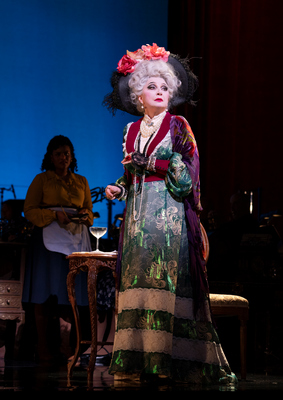 Some of the Encores! shows have been so successful, they have gone on to full Broadway runs. Others? Not so much. But still worth seeing for whatever pleasures they might afford, even if only to satisfy "completers," fans eager for the opportunity to catch shows on their wish lists. Which brings us to the current offering, Dear World, the 1969 Broadway show with music and lyrics by Jerry Herman, then basking in the glory of having two of his biggest hits (Hello, Dolly! and Mame) simultaneously running on Broadway. The triple-play phenomenon did not last very long. Dear World, a strange musical indeed, opened in February of 1969 and closed in May, while Hello, Dolly! and Mame would both continue their original Broadway runs until the following year. In its original incarnation, Dear World was received with rather less than enthusiasm by the critics. Clive Barnes, writing for The New York Times, called it "an evening that seems destined to be forgotten." And there is nothing in the Encores! version to call Barnes' judgment into question. Which is not to say that Dear World is not worth seeing, especially with a cast that includes Donna Murphy in the lead role of Countess Aurelia, an eccentric among eccentrics, portrayed in the short-lived Broadway production by Angela Lansbury and captured in all its oddball glory on an original cast recording. Dear World, bravely directed and choreographed here by Josh Rhodes, is based on a satiric play, The Madwoman of Chaillot, written by French dramatist Jean Giraudoux. The book for the adaptation was written by Jerome Lawrence and Robert E. Lee. Just to be clear, the plot makes almost no sense, something about fighting against the greed of businessmen like those portrayed in the Encores! production by Stanley Wayne Mathis and Brooks Ashmanskas. They play characters known, respectively, as Prospector and President, with a plan to blow up the French café that is home to Countess Aurelia (Murphy, lusciously costumed by Toni Leslie James) in order to get at some valuable oil that allegedly flows beneath it. Essentially, it becomes a battle between the kind-hearted little people and the cruel military-industrial complex. On the side of the good, in addition to Murphy's character, are her equally eccentric pals Constance (Andréa Burns) and Gabrielle (Ann Harada). For advice, Constance consults her hot water bottle, and Gabrielle confers with her invisible cats and dogs. In addition, the dialog is filled with corny jokes and nonsensical aphorisms. Two examples: "Wet customers are like fish; they don't tip" and "At noon, all men become Roderick. Each hour on the hour all men's names automatically change. Everyone knows that.") So much for the plot and the dialog. And so much, as well, for most of the score, a real mish-mash of styles and instrumentation (lots of accordion work–all the better to capture the Frenchness of it, I suppose). Act I does end with a rousing call-to-arms led by Countess Aurelia. It's called "One Person," though the tune sounds suspiciously like "Before the Parade Passes By" from Hello, Dolly!. The second act fares somewhat better musically, especially with a couple more songs for the Countess. The wistful "And I Was Beautiful," in particular, is movingly performed by Donna Murphy, and the show's title song, an ode to the world in general, is a spirited ensemble piece, also led by Murphy. I mention Donna Murphy quite a bit because she pretty much carries the burden of providing the show with its much needed sense of purpose, of the little person standing up against the seemingly all-powerful bullies of the world. Her Countess Aurelia is eccentric, brave and vulnerable all at once, and it is an altogether lovely performance in a show that generally is unable to find its way, caught somewhere between silly fantasy and genuine absurdism, as epitomized by the far more successful Promenade that Encores! Off Center produced a few years back. Two other performances worth noting are Christopher Fitzgerald as Sewerman, a role that allows Fitzgerald to display his comic flair during a scene in which he plays judge, defendant and attorney. Also doing a great job is Kody Jauron as a tenderhearted young man who mimes his entire role, spared from having to recite any of the wackadoodle dialog. On a final note, I do want to add my own welcome to Encores! new music director, Mary-Mitchell Campbell. Based on this first production under her baton, the orchestra is in fine hands. Let us hope for a long and happy partnership as well as better material to work with, more along the lines of the upcoming The Light in the Piazza.