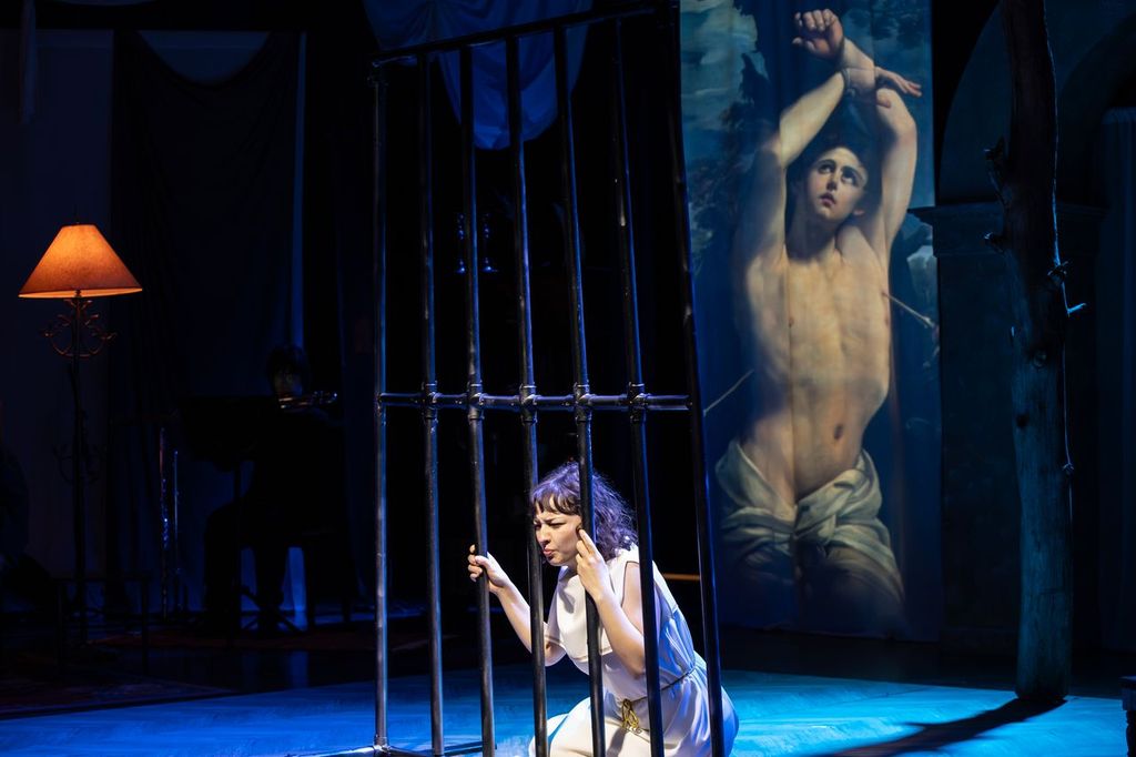 There seems to be a developing trend on the New York stages where audiences witness women characters deconstructing stage classics written by men, focusing on underdeveloped feminist aspects. The theme is currently being played out on Broadway in David West Read's book of the jukebox musical & Juliet, and was deeply dived into last season in Kimberly Belflower's John Proctor Is the Villain. A tragedy by the ancient Greek dramatist Sophocles is currently the subject of two explorations through feminist eyes. At The Public, there's Anna Ziegler's Antigone (This Play I Read In High School), and now at La MaMa, via the New York Innovative Theatre and Obie Award-honored Peculiar Works Project, comes Barbara Barclay's smart and evocative Antigone in Analysis. In several ways, the is exactly the kind of theatre people have been coming to La MaMa for since the 1960s: a little off-beat, intellectually niche, and highly worthy of post-theatre discussion. Director Ralph Lewis' production captivates upon entry, with set and projection designer Evan Frank welcoming audience members with an elegantly furbished parlor containing the curious feature of a dead tree prominently propped up. Both sides display paintings by the likes of Joan Miró, Wassily Kandinsky, and Paul Klee, suggesting the controlled chaos of the abstract discussion to come. Onstage flutist Samantha Kochis performs composer Alana Asha Amram's soothing music as, one by one, projections announce the arrival of an ensemble of authors and analysts who will serve as the play's Greek chorus. There's French psychoanalyst Jacques Lacan (Sammy Rivas), dressed by costume designer Grace Martin as though he's starring in a Noël Coward drawing room comedy. Non-binary gender studies author Judith Butler (Linnea Scott) appears in a baggy suit and sneakers. Feminist philosopher Luce Irigaray (Nomi Tichman) wears comfy bohemian garb, while theologian Søren Kierkegaard (Simon Henriques) and philosopher Georg Hegel (Mick Hilgers) sport period 19th century attire. The subject of their lively discourse is the title character Antigone, who was born out of the incestuous relationship between Oedipus and his mother Jocasta. As Sophocles dramatized, Antigone faced a death sentence for trying to provide a proper burial for her brother Polynices, deemed a traitor by her uncle, Creon, ruler of Thebes. "Antigone is not just against authoritarian law. She's against a blatantly patriarchal law," insists Butler. So as a matter of experiment, the five imagine how the story might be different (or exactly the same) if it were her mother's law that she broke. Enter Bianca Leigh playing Jocasta, now ruler of Thebes, and Alessandra Lopez as her rebellious daughter Antigone. The two play out the conflicts of the Greek tragedy while the scholars from later centuries, when they're not doubling as supporting characters, dig into their psyches. Lacan, for example, ponders if Antigone's actions are motivated by romantic love for her brother. "Is Antigone carrying forward the trauma of incest? Like mother, like daughter?" Indeed, in her program notes, Barclay explains how exploring her relationship with her mother was the initial inspiration for the play ("Especially, her blindness to who I was."), and her work delves into considerations of a daughter's obligation to her mother and if children have a right to expect unconditional love from their parents. But the theme that dominates the proceedings is a debate on the existence of gender-based behavior, in this case how it may pertain to a woman leader empowering a system that some may call intrinsically patriarchal. In her portrayal of Jocasta, Leigh arrogantly postures and pronounces in a way reminiscent of several tyrannical males who may come to mind. Butler notes, "Even though physically, she is a woman, she rules like a man so she presents as masculine." When Antigone, played with sensitive nobility by Lopez, insists that Jocasta doesn't need to deny her maternal nature in order to rule, the queen counters, "I should show compassion? Softness? Timidity? Weakness? Why would I need that to rule? Oedipus did not need any of that." Whether intentional or not, the way Jocasta and Antigone are cast brings to mind the contemporary visual of conservative blonde women in the forefront of a movement rejecting contemporary feminism and being challenged by a liberal side demanding social justice which is more likely to include BIPOC women. Toward the play's end, in a moment symbolic of the imprisoned Antigone's suffering, a winged creature appears to sing in what the author describes as "an ethereal, otherworldly voice". That prerequisite is thrillingly achieved by soprano Freja Højland Høj. As the two chorus members who, in real life, are still alive, ponder the future, Irigaray optimistically notes how women today have more power to stand up to sexist laws without having to die for their principles. "But some still do, you know," observes Butler. Antigone in Analysis Through April 5, 2026 La MaMa's Downstairs Theatre 66 East 4th Street Tickets online and current performance schedule: LaMama.org