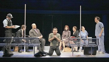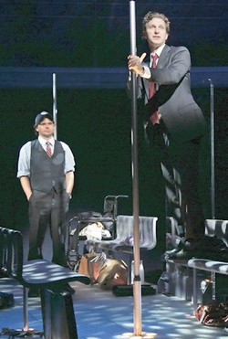 The lack of musical or dramatic continuity between the bits (aside from Bruce Coughlin's excitingly throbbing orchestrations) prevents things from ever cohering entirely. The banter in the in-between subway scenes is well-intentioned, but doesn't keep the group from feeling more like a collection of specialty acts than specific personalities. Gina (Jenny Powers), a self-professed globetrotter who can't decide what she wants to relive, and Zack (Sebastian Arcelus), a recklessly driven lawyer who's positive he got on the wrong train, provide a bit of variety. But when even ostensible outsider Stanley gets in the act, recollecting his former life as a Wall Street power broker, you start wondering whether every number is merely a Frankel-Korie trunk song. If so, many of them are uncommonly good. Applegate's "Best Seats in the Ballpark" is sensational, a moving union of father and son under the most unique of conditions; Powers triumphs with "Gstaad," about Gina's most memorable trips abroad; and Helen's USO gig is a swinging high point summoning up the best of 1940s musical styles. That opener, "Just Not Right Now," is breathless and energetic, just like New York at the start of a new week, and Stanley's "Blips," about the slightly sadistic joy he finds in every train breakdown, is the height of sly smoothness and a close fit for Foster. The only complete embarrassment is "Road to Nirvana," sung by the "conservative" shock-jock (Joanna Gleason, not at her best) who reveals herself a closet Democrat with a yearning to return to the acid-fueled 1968 orgy she took part in just before Nixon was elected. Robert Petkoff and Pearl Sun are appealingly neurotic as a Jewish-Chinese couple, but their big duet, "Family Flashcards," in which they learn the ins and outs of each other's language and lineage is more lighthearted party entertainment than the romantic footsy it's supposed to be. Page's and Cervantes's numbers are bland, but well performed; Arcelus has few songs of his own, but is convincing as the attorney forced to prosecute his own missed opportunities. Were it not for him, however, there would be little of note about the show or its warning to not let life speed by. As it is, the most shocking discovery is Stroman: This is her best work in years. Her dances are far more original than those in Young Frankenstein and evince few of her typical tricks; her staging is innovative and experimental, utterly unrelated to her usual cartoon realism. Meshed with Thomas Lynch's dynamic sets (especially the elaborate, stage-filling subway car), William Ivey Long's crisp costumes, and Donald Holder's rich lighting, this is one of the most 2009-looking and -behaving shows of the season. But one can't help wish the authors had set their sights higher. Grey Gardens proved that Frankel and Korie could establish and maintain an unusual musical language across multiple types of characters and plots; that skill would have prevented the score from sounding like a dusty jukebox set on random. Like the songs, Weidman's book is full of choice morsels that never solidify because they never have to. Had the clever concepts and structure been united with words and music that elevated rather than isolated them, they could have formed the smartest and most artistically successful musical of the season. As it is, it's still delightfully unpredictable and fascinating, even if it's destined to depress those desperate for the next great, complex musical drama.