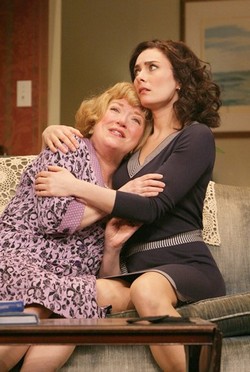 Although Nielsen is technically playing a put-upon New Jersey housewife named Luella, who must cope with a distant and violent husband and a sophisticatedly frustrated daughter, she's really playing someone far more fabulous: herself. Or at least the persona she's cultivated as a super-ditz Durang interpreter in plays like Betty's Summer Vacation and Miss Witherspoon, the one tormented by every little spin and shake of the planet as it spins on its wobbly axis. For playing a woman who sees and feels everything but understands nothing, there's no one better than Nielsen. Her first appearance here, fastidiously arranging flowers with the blurry fluster of a drunken hummingbird, is unreasonably funny - even more so because she does it silently. When she's describing her love of the theatre to her uninterested daughter, her voice is flooded with giddily confused earnestness. And when she describes how two people offed themselves at Broadway shows - one with a gun at Faith Healer, the other by sheer force of will at The Coast of Utopia - keeping yourself from dying of laughter is a Herculean challenge. Even when Nielsen must get serious, she's a comic dynamo. Luella must eventually stand her ground against decades of her husband's psychological abuse, and when she does - demanding, among other things, that the plug be pulled if she's ever put on life support - the spirit comes through just as readily as the comedy. You feel for her, yes, but you don't pity her - Nielsen doesn't play that game. She's going to make you as demented as Luella is - and welcome the descent into madness. She doesn't have to work very hard. Director Nicholas Martin has given the play a fine production, and David Korins has devised a spectacular rotating set for depicting each of the locales in which the action takes place. But it all seems to exist only to put a glossy sheen on something that otherwise wouldn't be worth a second glance. Rather than being content with inconsequentiality - which is sometimes good enough for him - Durang has gotten all "significant," with disastrous, discomforting results.