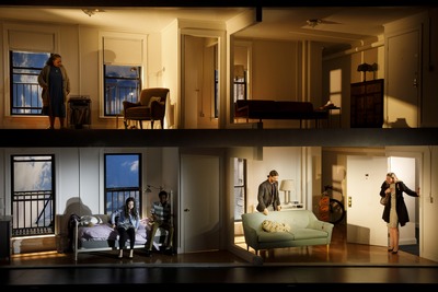 Consider Julie (Ella Kennedy Davis), a rambunctious 13-year-old preparing to return to her reopening junior high after nine fellow students have been gunned down. Raised by a well-meaning but struggling father, Dan (Lucas Papaelias), a failed standup comic (and when you hear his jokes, you'll know why) who settled down to an unexciting job in the water department, Julie is like a couple of adolescents stuffed into one. She's matter-of-fact about the tragedy, joking about it with her sort-of-boyfriend Zander (Ian Saint-Germain, who's funny and charming) and hoarding the left-behind possessions of a schoolmate victim, whose desolate mom, Lisa (Cassie Beck), turns up on Dan's doorstep a lot. Yet she's terrified by anythingthunder, unexpected noises, the thought of going back to school. Julie is smart, the author of a fine school essay on Columbus, which gives the play its title, which otherwise has very little to do with the goings-on. She's ambitious: She wants to be president someday. Yet she's incapable of understanding what has happened, and she's ignorant. She has no smartphone or computer, and she's stunned to learn that shootings like the one she's just endured have happened before. Sorry, Lindsey, I'm not buying it. Even if denied a smartphone, a virtual impossibility in today's day and age, surely Julie would have channel-hopped long enough to know of other such incidents, or borrowed some friend's computer and seen something about them, or overheard fellow students talking about them. (We don't get much of a sense of how popular Julie is, but she's no wallflower. Nor do we get much feel for where she's living, evidently the downscale neighborhood of an upscale community on the New England shore.) To trigger Julie's sudden anger and panic, Ferrentino sets up this incredibly unlikely no-Internet-access premise; in a word, contrivance. Dan, trying to protect her, wants both to help her process the shootings and mute the memory of them; Papaelias nicely conveys the agonizing conflicts of a single parent in crisis mode. They live in a small apartment, rendered by Dane Laffrey as the bottom half of a detailed set, the other half of which is the apartment above, occupied by Cloris, a former cellist incapacitated by tendonitis who likes playing Bach cello LPs; whenever Cloris plunks down the needle, Christine H. Kim, downstage right, plays a live cello, a lovely but needless extravagance. While she ultimately wraps up the plot with a long monologue implausibly telling Julie what the rest of her life will be like, Cloris is a highly incidental character, meaning poor Lynda Gravatt has to spend maybe five-sixths of her stage time knitting, reading the paper, and playing records. Indeed, director Rebecca Taichman often seems at a loss where to put her idle characters, having them wait motionlessly down a hall or linger on a fire escape. She also encourages overacting. Davis's Julie yells a lot, as maybe a troubled 13-year-old would, but her mood transitions are abrupt and artificial. Of course our hearts go out to the devastated Lisa, a mournful mom who feels her purpose in life has been cruelly removed, but Beck's is a fidgety, high-pitched performance, all nervous laughter and sudden breakdowns. There are good scenes, notably a tense one between Lisa and Dan when she finds out he's been lying about his address to send Julie to a better school than the one in her district. Which is presented as a rather loud irony: If only Julie had attended her less prestigious local middle school, she'd have avoided all this. And there are good lines, mostly from Cloris, whom Gravatt invests with a sardonic world-weariness that feels right for this mostly extraneous character. The main topic at hand is one the theater hasn't paid a lot of attention to yet, and ought to. Ferrentino did her homework, apparently thinking hard about Sandy Hook before writing This Flat Earth, and she gets some of Julie right: a bright, questioning young lady who's being forced to explore large issues, like the randomness of tragedy, before she's mature enough to face them with sufficient life experience. Maybe some students at Marjory Stoneman Douglas are going through that right now, and Ferrentino, however clumsily, is brave to attack such calamities head-on. As a distraught Julie rages when (unconvincingly) just discovering that these things happen, "Why don't the grownups just fix it?" Good question, kid.