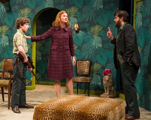 Wanda June premiered Off Broadway in the fall of 1970, and a few months later the production moved to Broadway, where it ran for 96 performances. The cast included Kevin McCarthy, Marsha Mason, and William Hickey. (Dianne Wiest was an understudy.) The play was made into an unsuccessful film in 1972 with Vonnegut serving as screenwriter. Vonnegut fans will recognize the genre-busting conceits and madcap non sequiturs, and the play's antiwar, antigun satirical focus is pointed and unambiguous. Indeed, the evening begins matter-of-factly with one of the main characters announcing, "This is a simple-minded play about men who enjoy killingand those who don't." The plot, however, isn't quite so simple with its twists and turns through the space-time continuum. The Odysseus character, here named Harold Ryan (Jason O'Connell), has been held captive for eight years in the Amazon with his pilot and sidekick, Colonel Looseleaf Harper (Craig Wesley Divino). Looseleaf's main claim to fame is as one of the bombardiers on Nagasaki, but he is now racked with ambivalence. Harold's wife Penelope (Kate MacCluggage) has not been holding off a hundred-some suitors in her husband's absence as did her precursor in Homer's tale. Actually, she has been entertaining a total of two. When the play opens, she is engaged to be married to one of the men, Dr. Norbert Wooly (Matt Harrington), a physician who is the diametric opposite of Harold. (The other suitor, played by Kareem Lucas, is a vacuum salesman and a Harold acolyte.) Wooly describes himself as a healer, and he forthrightly philosophizes, "Gentleness must replace violence everywhere, or we are doomed." To reiterate, this is not a subtly satirical play.