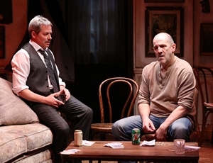 First staged at the National in London in 2006 and on Broadway the following year, The Seafarer revolves around five poker-playing, Irish drunks who end up at the ramshackle, broken-down home of the Harkin brothers for a Christmas Eve of cards, debauchery and Mephistophelian revelations. The younger Harkin brother, Sharky' (a superb Andy Murray), has returned home to care for his now blind, older brother Richard (the relentlessly critical Colin McPhillamy) who lost his sight recently after falling into a dumpster. Sharky's at loose ends after being let go from his job as a chauffeur to a wealthy couple after becoming a bit too fond of the wife. He's also trying not to drink which becomes problematic when a party of sorts materializes in the form of Richard's bumbling friend Ivan Curry (deliciously played by Michael Mellamphy) who's lost his glasses in his stupor from the night before, along with Nicky Giblin (the handsome yet feckless Tim Ruddy) and his friend Mr. Lockhart (stage and screen star Matthew Broderick). Adding tension to the evening is the fact Nicky is now living with Sharky's ex and driving Sharky's car. His friend Mr. Lockhart recognizes Sharky and the evening's stakes get ratcheted up when Lockhart is revealed to be more than he appears. After several questionable outings on Broadway and off-Broadway in recent years, it's a pleasure to report Matthew Broderick is giving a taught, understated performance as Mr. Lockhart, complete with a solid Irish brogue. Since he spent his childhood summers in Ireland and owns a vacation home there with his family, the Irish rhythms and cultural milieu have obviously rubbed off on him which only contributes to his carefully modulated characterization. Where Ciaran Hinds, who played Lockhart on Broadway in 2007, had a more menacing streak, Broderick employs a more everyman' quality to his portrayal that fits seamlessly with O'Reilly's far more humorous production. When he finally turns angry at the play's climax, his eyes flash with the kind of rage that could burn the theatre to the ground. It's nice to see Broderick back in top form despite the observation his star' presence throws off the balance of the ensemblebut only slightly. Famously, Jim Norton won both the Olivier and Tony Award for his tart, peevish portrayal of older brother Richard in The Seafarer. In the Irish Rep revival, Colin McPhillamy is similarly wondrously irritating, but there's more balance with Andy Murray who portrays his younger brother, Sharky. In a revelatory performance, Murray, who resembles the action-star Jason Statham, quickly realizes the trouble he's in with Lockhart. As his desperation turns to resignation, his portrayal of a man who's run out of chances is as heartbreaking as it is chilling. As McPhillamy's criticisms and insults mount, you can visibly see Murray physically and emotional wince at his brother's pointed barbs. His face at the play's conclusion reflects the kind of redeeming grace we could all use more of in these troubled times. As the flowers and trees begin to bloom, you may not think you want to see an Irish tale of alcoholism, loss and redemption, but you'd be wrong.
