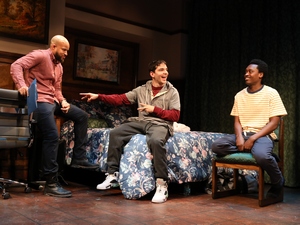 Comprised of five intermission-less scenes, Transfers opens on a snowy winter's day at Herrell College in Massachusetts where Clarence Matthews (Ato Blankson-Wood, excellent) has arrive for a scholarship interview he thinks is just a formality. Accompanying him is David DeSantos (a hyper-kinetic Glenn Davis), the liaison for the scholarship candidates from the nonprofit sponsor whose job it is to quickly prep them for their interviews the next day. No sooner has Clarence learned his scholarship isn't a done deal than Cristofer Rodriguez (Juan Castano, superb) joins them in the crowded hotel room. Cristofer instantly recognizes Clarence from the old neighborhood in New York on 163rd Street, but Clarence initially feigns no memory of knowing him. What follows is a lot of clunky exposition and contrived excuses for one person or another to exit the hotel room so the remaining coupling of characters can converse. It strains credulity but it's a testament to Blankson-Wood and Castano that we're already hooked on where their story is going. Not so much with Davis, whose manic tone and overwrought gestures grow wearisome almost immediately. The following two scenes are Clarence's interview with Geoffrey Dean (Leon Addison Brown, terrific) which goes beautifully, and Cristofer's interview with Coach Rosie McNulty (the wonderful Samantha Soule), which gets off to a rocky start before the two connect over shared life experiences. These are quickly followed by a ridiculous scene in which DeSantos, Dean and McNulty meet to discuss the candidates and select who will get one of the four scholarships available. The play concludes with a short coda in which Clarence and Cristofer meet again briefly to come to terms with what's happened to them. Smoothly directed by longtime Thurber collaborator Jackson Gay, Transfers benefits from an exceptional scenic design by Donyale Werle which magically converts the initial hotel room into two faculty offices, a conference room and a café. It also benefits from two magnetic lead portrayals by Blankson-Wood and Castano, the latter of whom is reprising his role from the New York Stage and Film production in 2016. Their understated performances, along with their interviewers Brown and Soule, also wonderful, make for compelling theatre about ideas seldom, if ever, talked about in plays. In particular, Cristofer's interview scene with Coach McNulty is almost the perfect realization of writing, directing and acting where Castano and Soule hold the audience captive in their shared reality of connection. For more than fifteen years, Thurber has been writing character-driven plays about people in dire circumstances who "want" something and she's become an astute observer of whether they get what they're searching for, the road they take to get there, and what it may have cost them along the way. New York audiences have recently seen Thurber's The Insurgents, produced by Labyrinth in 2015, as well as her monumental 5-play cycle, The Hill Town Plays, which were produced by Rattlestick in 2013: Killers and Other Family, Where We're Born, Stay, Scarcity and Ashville. While not perfect, Transfers takes Thurber in new directions in terms of subject matter and plotting, and her genuine affection for her deeply flawed characters shines through as it does in all her writing.