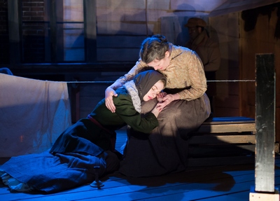 The Metropolitan's artistic director Alex Roe has gathered an excellent slate of more than a dozen Equity actors and has managed to fit them into the small performance space, which, for this production, has been outfitted with a hand-operated turntable that allows things to keep moving across the play's five acts and 11 different scenes with clarity of the who, what, where, and when of it. The play, a Dickensian excursion that eschews any semblance of naturalistic authenticity in favor of tapping directly into the emotional heart of the matter, takes place in the aftermath of the actual global financial panic of 1837, which led to stocks plummeting and the drying up of credit. It all begins in the office of banker Gideon Bloodgood (Bob Mackasek) as he is preparing to abscond with as much of the bank's assets as he can lay his hands on and jump on a ship that will take him from New York to Liverpool with his beloved spoiled-beyond-redemption daughter Alida (a wonderfully snarky and self-absorbed Alexandra O'Daly). Just as he is about to depart, in walks a sea captain (Eric Emil Oleson), Fairweather by name. He has $100,000 he wants to deposit. Will Bloodgood accept it? Can you guess the answer to that? In any event, Fairweather leaves the money with Bloodgood and exits, only to return a little while later demanding everything back. It seems that news of Bloodgood's unscrupulous reputation has reached the captain's ears. Bloodgood tries to put him off, then fate steps in and Fairweather suddenly keels over, dead. Bloodgood dumps the body with the aid of one of his equally maleficent clerks, Badger (David Logan Rankin, who sinks his teeth into the role as if it were a gourmet feast laid out before a very hungry man). Throughout the rest of the play, we are asked to decide which of the two is more villainous than the other. While the two rapscallions go at it, we meet the true victims here, Fairweather's wife Susan (Teresa Kelsey), their daughter Lucy (Tess Frazer), and their honorable son Paul (Luke Hofmaier). Now penniless, for a while they are helped by their kind-hearted and generous, though nearly just as impoverished, landlords, the Puffys (Jon Lonoff and Jo Vetter) and the couple's son Dan (SJ Hannah). The Puffys embrace life like the Fezziwigs in Dickens "A Christmas Carol," though they, too, barely have two pennies to rub together. Lots of plot twists later, we eventually will have our happy ending, with a few surprises tossed in there for good measure, especially as it relates to the fate of Badger. Between scenes, the cast offers up some fine singing under Trevor St. John-Gilbert's choral direction, and while there isn't much by way of set design, everyone gets to show off the lovely period costumes designed by Sidney Fortner. It's not hard to see why The Poor of New York was a popular success. As outlandishly as its convoluted, coincidence-strewn plot defies the traditional conventions of play writing, it has a ton of heart, and audiences of the time would have had very strong knowledge of the reality of the economic crisis depicted here. If you go into it with this understanding in mind, you are in for a real treat, a rare opportunity to see a genuine melodrama that does not pretend to be anything else, with no ham-handed wink-wink performances among the fine company.