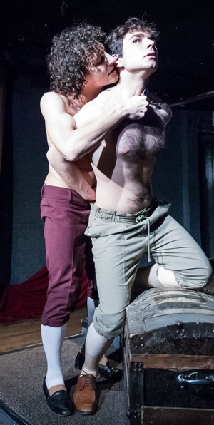 As audience members enter the theatre and fumble their way through the darkness, they may have the feeling they have accidentally entered the McKittrick Hotel, where Sleep No More, the Shakespeare-Hitchcock immersive performance mash-up, has taken up residence. Scattered throughout the space are robed and hooded figures, wearing long-beaked, plague masks, similar to the ones worn by participants at Sleep No More. The Shakespeare Conspiracy may not produce the same vicarious thrills of a high-brow funhouse, but for those who revel in historical deceptions, the play offers a fair share of intrigue and conspiratorial confirmation. The play begins in 1593. London is rife with plague, and the Crown is intent on rooting out blasphemers and Catholics. Sir Thomas Walsingham, a wealthy nobleman and arts patron, presides over a den of queens where a host of gay men preen and seek refuge from a world in which villainy abounds, and time is out of joint. Kit Marlowe (Mateo d'Amato) is Thomas's current lover, and when it appears obvious that the playwright might be arrested (or worse) for treason, the men hatch a plan to fake Marlowe's death. After all, there are plenty of bodies tossed onto the streets daily, and one might easily be used as a substitute. Life would not be worth living (even as a dead person) if Marlowe could not write, so the men select the not-very-bright and staunchly promiscuous Shakespeare as the literary stand-in. Marlowe and Thomas can now live in secret, eternal bliss. But to quote the Barder, Marlowe,"the course of true love never did run smooth." On the other side of London, Thomas's aristocratic and government-appointed cousin Francis (Jevon Nicholson) along with Constable Henry Maunder (James Arthur M., who performas double duty as the play's narrator) become increasingly more suspicious, and a game of cat and mouse commences. Will Marlowe be revealed as the true genius behind the Shakespeare ruse? Will his faked death be exposed? Unfortunately, the historical record provides definitive spoilers. While The Shakespeare Conspiracy has a good deal of melodramatic twists and turns to hold one's interest for most of the two-hour running time, it is not likely to change the mind of people who believe that Shakespeare did indeed write Shakespeare's plays. Sure, the main arguments supporting the Marlovian position, such as Shakespeare's presumably minimal education, his lack of worldly experience, and the intertextual references to Marlowe's works, are all presented. (It should be noted that many scholars have provided convincing rebuttals to all of these points.) But the characters are too thinly drawn and the periodic plot holes quickly skirted, though, to make a compelling case. The personage of the Bard, for example, is so vacuous and such a philandering boob in this telling that it is inconceivable anyone would accept him as a literary genius. Under Jeremy Karafin's direction, the hard working cast members have a lot of fun with the material. At times, however, the performances come across as a bit too broad and contemporary. In the early scenes, for instance, Walsingham and his cronies resemble an Elizabethan Boys in the Band. And when a skeptical Constable Maunder attempts to set his own conscience-revealing mousetrap, he does not resemble a wily Hamlet so much as a Tudor Lieutenant Columbo. Whereas Marlovians may find validation in this production of The Shakespeare Conspiracy, perchance the play may provoke a series of plays dealing with the authorship question. After all Baconians, Derbyites, and Oxfordians should have equal airtime and demand dramatic treatment of their theories as well.