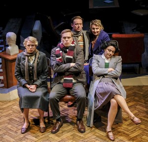 The title is a little misleading. It should be something like "A Brief History of the Women Who Helped Shape the Life of Anthony Spates From the Age of 17 to the Age of 77." That, in a nutshell, is the plot as it is being performed by the tight-knit collective of six splendid actors who have been together since the play premiered last year at the Stephen Joseph Theatre in Scarborough, England, where Ayckbourn's Number 82 is set to open in September. Not surprisingly, the playwright ignores the caveat against directing one's own work by doing that very thing with precision, grace, and joy. Spates (Antony Eden) is the one human constant throughout the play's four scenes, the first taking place in 1925 and the other three occurring at 20-year intervals after that. The other constant is the setting, a property that starts out as a private estate and then is repurposed over the years as a girls' prep school, a community theater and arts center, and finally as a country inn. While Kevin Jenkins' basic set design does not change over the course of the two-and-a-half hour production, part of the fun is watching the crew rearrange things between scenes while the cast members are offstage changing into appropriate period costumes (also Mr. Jenkins' well-considered design work) before rushing out to take on new roles. The character of Spates is that of an Everyman, more acted upon than acting to take charge of his own life. He is the calm eye of the storm and a witness to the goings-on about him, whose own life changes direction as the result of his coincidental contacts with the women who cross his path. In the first scene, he is a farm boy, taking on temporary duties as a footman at Kirkbridge Manor at an event to mark the engagement of Lady Cynthia (Laura Matthews) to Captain Ffluke (Laurence Pears). The scene starts off with the light tone of a drawing room comedy, but things go terribly awry after a contretemps between Lady Cynthia's mother (Laura Matthews) and Lord Kirkbridge, the girl's brute of a stepfather (Russell Dixon, who has the lion's share of the scene-stealing roles throughout much of the evening). The mood becomes quite ugly for the members of the family, but things nevertheless turn out well for Spates. He ends the scene on a high note, having received his first proper kiss along with a promise of support to pursue a higher education degree that will put him on a path away from farming and service. In Scene 2, we are carried forward to 1945. Kirkbridge Manor is now Kirkbridge Manor Preparatory School for Girls, where Antony is working as a teacher. Here he becomes romantically involved with a co-worker, Ursula (Ms. Matthews). The failed central heating system keeps everyone bundled and sneezing and irritable, yet things do manage to get hot and heavy for the couple. The shadow of World War II also hovers in the background, casting a pall over the school's Guy Fawkes celebration. Things do not end well for the lovebirds, causing Antony to depart before the year is up. The final two scenes are set, respectively, in 1965 and 1985. In the first of these, Antony is working as a general administrator at an arts center, where a ragtag band of actors is preparing for the Christmas pantomime amidst the decade's anti-establishment rage. Again, our hero is a bystander whose life is changed by a chance meeting with one of the women. In the play's final scene, another two decades have passed. Antony, now 77 years old, is back on site, where he has taken on temporary work in post retirement assisting with the management of the property, now a country inn. A Brief History of Women is not about anything grand and important. But it is a sublimely realized juggling act, in which the seemingly random juxtaposition of the characters turns into a perfectly arranged set of falling dominos. Likewise, the tone moves effortlessly between the wildly comic (none more so than Russell Dixon's turn as the theater director in a rehearsal of the panto) and heartfelt tear-inducing moments, often turning on a dime in unexpected ways. The cast members make these switches with perfect timing under Ayckbourn's detailed and wittily choreographed direction, down to the carefully consistent opening and closing of invisible doors, until everything comes full circle in the end of this lovely play, written and directed by a master of his craft.