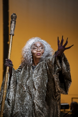 You can read more about Berman in Brian Scott Lipton's fine article in the show's Playbill, but one thing that stands out from that piece is a quote from the conductor, in which he takes particular delight in ending his tenure with Into the Woods, a show he says is "about the importance of community." It is that, but, as the character of Jack's mother (here played by Ann Harada) says in another context, Into the Woods is about "a lot of things," including parental abuse and neglect, self-justified lies, foolishness, greed, misogyny, infidelity, and sacrifice of self and of others. By all means, bring the kids for the show's fairy-tale roots (there were plenty of young children in the audience at the performance I attended), but don't be surprised if they have questions afterwards. Since I mention bringing the kids, I should point out that the production, confidently directed by Lear deBessonet and performed by a starry cast, does demand a hefty attention span, running as it does to close to three hours, with every minute devoted to giving us the full story as laid out by bookwriter James Lapine. Act I is all fairy tale as we meet up with familiar characters: Jack from "Jack and the Beanstalk," Little Red Riding Hood, Cinderella, and Rapunzel and the Witch. Their well-known stories intermix in Lapine's smartly-written Tony-winning script. The glue that holds the disparate parts together is a pair of characters created by Lapine: the Baker and the Baker's Wife, a couple whose longing to have a child triggers the plot. Act I begins with the words "Once Upon a Time" and ends, after a few adventures in the woods, with everyone seemingly enjoying their "happily ever after" promised by the fairy-tale format. But then, in Act II, things start going south as the one-dimensional characters become complicated human beings for whom Rob Berman's notion of "the importance of community" is the only thing that can save them from themselves and from a revenge-seeking giant. Enough about the plot. What can I say about the cast except for "wow?" Encores! has outdone itself by bringing in a stellar group of actors boasting exceptionally fine achievement in the world of theater and elsewhere. The A+ list of talented performers starts with Sara Bareilles, confident, funny, and heartwarming as the Baker's Wife. She is perfectly matched with Neil Patrick Harris (a replacement for the originally scheduled Christian Borle) as The Baker, a man conflicted and uncertain about how to handle his responsibilities as a husband, father, and son. Denée Benton gives us a lovely Cinderella against Gavin Creel's self-important Prince ("I was raised to be charming, not sincere"), who also plays the equally charming, if predatory, dancing Wolf (choreography by Lorin Latarro). Julia Lester, making her New York theater debut, is a wonderfully annoying Little Red Riding Hood. Cole Thompson is delightfully dimwitted as Jack. Shereen Pimentel (Maria in the sadly halted production of West Side Story that never returned after Broadway reopened) is excellent as the driven-to-madness Rapunzel.