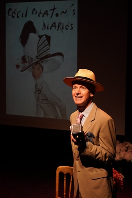 If you are even slightly familiar with Beaton, who passed away in 1980, it is likely you will recall his Oscar-winning high fashion designs for the films of Gigi and, especially, for My Fair Lady. Hard to forget the stunning black-and-white outfit and iconic mile-high hat worn by Audrey Hepburn as Eliza Doolittle at the Ascot races. And if that is the image of Beaton you wish to retain, you might want to stay away from Cecil Beaton's Diaries, the 75-minute show adapted from Beaton's actual diaries by its solo performer Richard Stirling. Certainly, there are celebrities who enjoy dishing the dirt about others with whom they have worked, but most often it's with an impish twinkle in their eye. No harm, no foul. But if there is a twinkle in Beaton's eye, it is probably the result of a cataract. Stirling as Beaton, crisply dressed in a bespoke beige suit, blue shirt, and pink tie, is not there to regale us with naughty tales of the famous and high-born in his Rolodex or whom he has photographed with his always-available Rolleiflex camera. Oh, he drops names with the best of them, but when he drops names, it is to smash them on the ground and crush them under foot. Katharine Hepburn, whom Beaton dressed for the musical Coco, is "the egomaniac of all time, a freckled, mottled, wizened piece of decaying matter." Then there are Richard Burton and Elizabeth Taylor, whom he photographed for Vogue magazine. Burton, he says, is "butch and coarse as only a Welshman can be," and Taylor's "breasts came out of her dress like those of a peasant woman suckling her young in Peru." Me-ouch! That's just a couple of examples; there are plenty more where these come from. Beaton, defensive and thin-skinned as can be, doesn't just hold grudges; he rears and nurtures them as if they were his beloved children. There is, fortunately, more to the show than just these vicious rants, including interludes about Beaton's personal life and loves, his infatuation (obsession?) with Greta Garbo (whose voice he tries awkwardly to imitate), and his career successes. If you are able to tune out some of the diatribes, you might enjoy watching the slide show being projected behind Stirling, of Beaton's portraits (the British royals feature prominently) and costume designs. Beneath all of the defensive/offensive outrage with which Beaton faces the world, it is clear there is a lot of pain and a deep sense of insecurity that has shaped his life, even if the details are scarce. Stirling does a superlative job of milking Beaton's diaries for all of their venom, even if the man being portrayed is someone you might not wish to sit down with for a spot of tea without making sure nothing extra has been added to your cup.