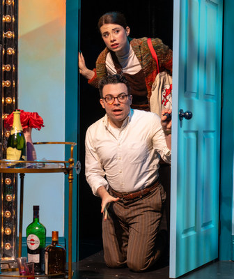 The race to its current finish had a head start. It's not the first time J2's Robert W. Schneider has directed the show, having done so for a production in the Berkshires a few years ago, and its creators–lyricist /bookwriter Lynn Ahrens and composer Stephen Flaherty–have been involved here, with input on casting and tweaks to what was the first produced work of the long-together collaborators. Now intermissionless, the frothy fun of this farce whizzes by at just the right speed and the songs are lively, accompanied deftly (behind the set) by a three-piece band of pianist/music director Miles Plant, bassist Sean Decker and drummer Amanda Lee Morrill. Words ring out loud and clear without the use of microphones. Based on the novel "The Man Who Broke the Bank at Monte Carlo" by Michael Butterworth, the story is set mainly in that location. Shoe salesman Harry is told that an uncle he never met has died and left a will that will grant him six million dollars on the condition that Harry travel with his embalmed body (in a wheelchair), pass him off as alive and involved in activities, and must arrive at specified places at dictated times, down to the minute. Failing this, the money will go to a charity for dogs. Eager to get their hands on the inheritance, an employee of that charity, Anabel, and the uncle's ex-lover Rita and her brother Vinnie follow him. And, of course, mayhem follows, too. The cast fully and fondly embrace the wackiness without winking at it or pushing it too far over the top to be exhausting. Audiences willing to surrender to silliness will find many moments of lunacy to laugh at. Although I know the show from seeing a past production and the film and through two cast recordings, the comedy's zing hit me all over again, thanks to the actors' terrific timing and razor-sharp reactions. That being said, I otherwise might have been a bit confused at times by a few minor incidents, especially with actors playing multiple roles in quick succession. Projections on a screen well above the top of the proscenium help identify locations. Along bright turquoise walls, the stage is dominated by a few readily slammable doors, used effectively for frantic comings and goings: de rigueur in a farce. (Set design: Matthew Imhoff) On a likable portrayal, Patrick Brady is a more than suitably harried Harry, who seems increasingly comfortable with the bizarre situations. The animosity–and later, attraction–between Harry and Annabel (Missy Dowse) could be a little sharper to raise the stakes and tension. However, their duet, "Nice," achieves much in showing their melting resistance. Dowse plays Annabel with lower-key sensitivity and warmth, a lovely counterpoint to the broader comedy around her, and her solo, "Times Like This," is sweetly affecting. She has a lovely singing voice; otherwise, pretty sounds are not the priority for this score. It mostly needs character voices–rambunctious, belty, and grand. It gets them here. The actors playing the manic siblings, trigger-happy Rita (Janine LaManna) and hapless, panicky Vinnie (Robert Anthony Jones), deliver major comic portrayals. Their early scene, with the song "Rita's Confession," is especially a hoot as she drops the bombshell fact that she has implicated him in her crime, along with the P.S. that they might be able to get the six million. He uses facial expressions of shock, horror, worry, dismay, and reluctant agreement in some resourceful clowning. Gleefully dashing in the role of the gregarious fellow introducing himself as Luigi, a willing guide and bon vivant, is Eric Michael Gillett, who was also a major asset to the company's April show, Do Re Mi (and will be on the roster of singers at J2's cabaret night of other Ahrens & Flaherty songs on May 7). A tight ensemble working like the proverbial well-oiled machine is crucial for a farce to work with panache. Anania Williams is just campy enough as a series of characters, chewing what little scenery there is as a chanteuse in "Speaking French." Also doing well in a variety of roles, sometimes with lightning-swift changes, are Quinn Corcoran, Marisa Budnick, and the especially versatile Richard Rowan (master of mischievous madcap and a Cheshire Cat grin). Last but not least, kudos to Alexander Carney with the unenviable task of being a fully visible dead man on display for long stretches of time. (He does occasionally get to drop a hand or his head and kicks up his heels in a dream sequence that has the potential to be wilder.) With the corpse in view through much of the action, the extra relevance of the prominent number "Good to Be Alive" does not go unnoticed. Director Schneider keeps things moving at a satisfying swift pace but lets us relax into some key moments of sweetness and would-be romance.
