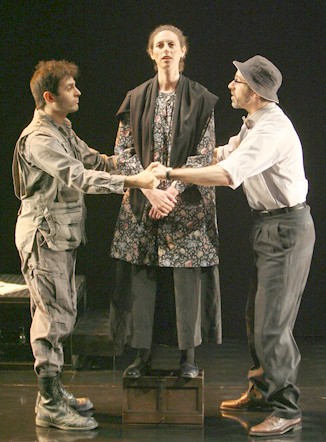 And it's people, speaking in voices both stentorian and stilled, that populate the poetic expanse of the Mideast called The Fever Chart. Naomi Wallace's unassuming triple bill, which The Public Theater is producing as part of its new Public Lab workshop series, brings the lilt of lyricism to mundane events, finding in their echoes a region and people you might have thought you understood but that you don't really know. The catch is, neither do they. The fluidity of identity and the uncertainty of perception are key throughout the three plays, which have been sparely but starkly directed by Jo Bonney. Whether Wallace is guiding you through a ghostly zoo, peeking in a deserted hospital after hours, or even eavesdropping on a speech at the International Pigeon Convention, the harsh light of reality she shines on those she discovers doesn't instantly display them more clearly, but only inspires further questions about what their real purpose is. It's obvious early in the first play, "A State of Innocence," that the Palestinian woman (Lameece Issaq) who knows far too much about the Israeli soldier (Arian Moayed) who can't stop admiring the animals he guards, is not exactly what she claims to be; the architect (Waleed F. Zuaiter) who can't stop measuring the eroding edifice is also too unusual to be strictly coincidental. But they can't maintain hate for each other anymore than can the middle-aged Palestinian man (Zuaiter again) in "Between this Breath and You" who believes that the young Israeli nurse (Natalie Gold) he meets is carrying about part of his dead son - literally and figuratively.