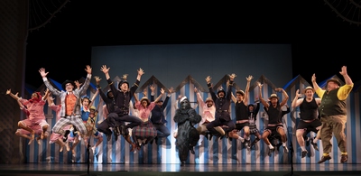 A hyper-animated Michael Urie stars in a role that seems tailor-made for his long ago predecessor, Phil Silvers, that of a hustler and conman who sets out to swindle the folks of New Brunswick, New Jersey after being run out of town in various other cities where he and his partner in crime (Kevin Chamberlain) pitched fake jewelry and snake oil to the gullible. Urie does his best here to sell us in the same manner, but despite all the charm he can muster, Silvers' checkered suit simply does not fit his shoulders. The show, with lyrics by Sammy Cahn, also a Broadway novice, and a book by Stephen Longstreet (reworked at the time by its director George Abbott), has been adapted for this production by Encores! artistic director Jack Viertel. That it makes little sense as it careens from scene to disconnected scene is as gentle a way as I can put it. Under John Rando's direction, almost every flaw is emphasized, while the show's strengths (and there definitely are some) are downplayed, with the lone exception being a madcap Keystone Cops chase, a recreation of Jerome Robbins' "Bathing Beauty Ballet" at the top of Act II. And yes, the production's own choreographer Sarah O'Gleby has done a fine job in reproducing that number. The rest of the dancing, and there is a lot of it, is a mishmash of styles, including another ballet that is reminiscent of "Appalachian Spring," though as if it had been choreographed by Agnes de Mille instead of Martha Graham. There's also a thoroughly absurd tango that is maniacally danced by Matt Loehr and Mylinda Hull, who, at least, seem to understand that they are engaged in nonsense and make the most of it, grandly playing off one another like Comden and Green performing one of their comic routines. There are some very good songs scattered here and there, including "Can't You Just See Yourself in Love with Me?" and "You're My Girl." These two numbers are the only ones that fall into the good old-fashioned romantic musical comedy mode, and they are well-sung here by Marc Koeck and Carla Duren as the young romantic leads. But neither the toe-tapping "Papa, Won't You Dance With Me?" nor the appealing soft shoe tune "I Still Get Jealous," both of them performed by Betsy Wolfe and Chester Gregory, manage to soar. The rest of the cast try to rev things up with lots of frenzied mugging, but snake oil is still snake oil, no matter how you package it.