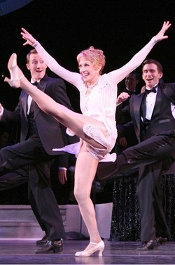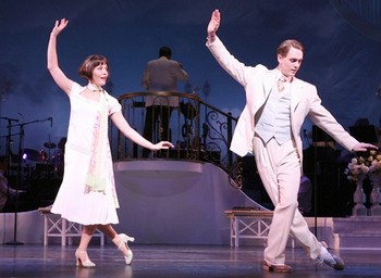 It warps so many holes in the space-time continuum during the Encores! production of No, No, Nanette, you have real reason to fear being impaled by Atilla the Hun's spear if he goes berserk during the curtain call. But even if you survive that, you'll have to adjust to life in a bygone era; Cynicism, nuance, and the occasional grit or grime play such vital roles in the theatre of 2008 that to be stripped of them this completely is to flaunt death by exposure. But this sweetest and pastel-iest Encores! in memory is more often than not worth the risk. Director Walter Bobbie, conductor Rob Fisher, concert adapter David Ives, and choreographer Randy Skinner have taken Burt Shevelove's 1971 version of the 1925 Vincent Youmans-Irving Caesar-Otto Harbach-Frank Mandel musical and broken it down to its component components. In short: songs, lame jokes, and dances. Lots of dances. Cry-Baby's gyrating and the roller-skating down Xanadu way are mere pigeon feed compared to Skinner's steps, the liveliest imaginable unironic resuscitations of the carefree 20th-century hoofing aesthetic. Filling the stage with flying feet and his cast's faces with tooth-beaming smiles, he sends them sailing through more dance breaks than should be allowable by law - seemingly, after every single song. The chorus kids never stop moving, whether throughout Art Deco apartments or the beaches of the New Jersey shore, though sometimes they can be shown up by one of the resident old-timers on hand.
