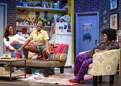 The morning begins with Octavia, a fiercely confident Paige Gilbert, and her girlfriend Ry, the unflappable Coral Peña, finishing their off-stage sex, loudly! Octavia promptly goes to the bathroom to examine herself and is horrified to discover a mole on her clitoris. Is it cancerous? Will Ry, who's also Octavia's business partner in an upcoming, as yet unwritten film project, take a look "down there" and tell her what she sees? Well, no, she won't, which prompts Octavia to throw Ry out of the apartment and take consolation in her roommate Imani, a budding standup comic obsessed with Eddie Murphy's "Raw" (we eventually learn why) played with stylish panache by Alfie Fuller. They're soon joined by their roommate June, the wonderful Antoinette Crowe-Legacy. June is a high-powered accounting consultant who's unable to free herself from a serial-cheater boyfriend who she's just caught cheating . . . again. As the three friends pour out their hearts and souls to each other, you become conscious of the piercing realness of the women's relationships. The dialogue is brutally honest and we immediately care about all of them, despite the fact each is deeply flawed and has serious emotional issues. Much of this is due to the unbridled talent of the actresses playing Octavia, Imani and June, but credit must also go to the tempo, tone and ambiance created by director Robert O'Hara. Unlike previous productions of BLKS at Steppenwolf and Woolly Mammoth, both of which were directed by Nataki Garrett, O'Hara brings a fast-paced touch, and his own outrageous sensibility, to the breakneck antics of the women as they go out for a night of clubbing and drinking where they run into a white girl with white girl guilt issues, the droll Marié Botha, as well as the super-sweet Justin, played to perfection by a chiseled Chris Myers. How June ends up in her cotillion dress and Justin ends up servicing Octavia on what may be the last night of her fully functioning clitoris are what drive BLKS day from the late-night hours into the morning. Barnes' play is raunchy and heartbreaking and unmissable.