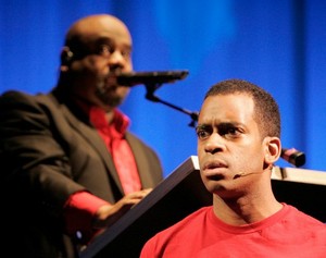 Luckily, it's the latter that ultimately wins out in this well-oiled, plucky picaresque from rock musician Stew (book, music, and lyrics) and Heidi Rodewald (music). Though it's both thin (on plot) and bloated (of running time; a solid two and a half hours), Passing Strange demands and delivers more than your average, illiterate pop-rock musical, of which Spring Awakening is the current, trendy example. It encompasses everything from the theatre of Bertolt Brecht to contemporary gospel and even European art-house cinema in telling its swirling story about discovering who you are through any and all means necessary. Its particular subject is the ongoing punk-band masquerade ball of American life in the last third of the 20th century, focusing on a single African-American Youth (Daniel Breaker), reportedly based on Stew himself, who rapidly finds himself outgrowing his native Los Angeles. He's drawn to music to escape his emasculating Mother (Eisa Davis), and the religion of questionable value she's trying to pull him into: He heads first into the church's choir, then abandons it in favor of a life of sexual hedonism in Amsterdam and revolutionary hedonism in Berlin before being drawn back to the United States to face the prospect of becoming the man his mother always wanted him to be. As with most tales of this nature, it's not what he learns that's of value (he doesn't learn much), but how he learns it. Annie Dorsen's production similarly invigorates this familiar, borderline exhausted, story with a concert-beat poetry aesthetic that finds four dynamic onstage musicians surrounding with their bodies and their accompaniment both the Youth and Stew, the piece's narrator. The music is trapping them both, though the Youth can still decide whether he wants to be constructed or destroyed by it: He has one chance to let his own view of himself, not that of his culture, his mother, or the women (De'Adre Aziza, Rebecca Naomi Jones) he romances on his trip, determines who he will become. The score supports, rather than hinders, that journey, and in doing so gives Passing Strange a broader, more invasive scope than it might otherwise possess. The frantic revivalist rave-up that awakens the Youth's latent spirituality also oppresses him with its conscious conformity; a woman who gives the Youth the keys to her flat unlocks his dormant sexual yearnings with an insinuating and infectious soft-rock song about the little acts of kindness in life; the music makes an orgiastic acid trip all too real a way of dulling the pain, while a funeral scene's mock-dirge-like strains deceptively wallow in it. Stew and Rodewald miss no aspect of the young-adult experience, and David Korins's rocking arena set and Kevin Adams's explosive lighting are key to establishing it within the proper adolescent perspective. But the show has little to say about any of these experiences, making it feel more like a diversionary outing than an enlightening one. There are times that's more than enough (the second act's Berlin sequence is a far more lively evocation of Brecht than the whole of LoveMusik, currently playing on Broadway), but you can't help but expect a show of this length to say more and, ironically, travel farther. The Youth toils, but eventually learns why he's here; the show about him struggles even more openly.