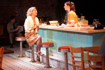 In his review of a British production in 2011, Alfred Hickling compared the play to "an Edward Hopper painting with dialogue." It's a particularly apt description for the version presently on view. The setting is a diner in a small Kansas town, and Peiyi Wong's spot-on scenic design seems to pay homage to Hopper's "Nighthawks." A foot-high barrier surrounds the playing space, and a large wooden frame hangs above. The audience is at a remove from the action, and the impression is akin to looking into the restaurant through large plate-glass windows, áa la Hopper. (Mariko Ohigashi's period costumes effectively capture a romanticized depiction of the 1950s.) The figures in the theatricalized portrait gradually come into focus. Grace Hoylard (Cindy Cheung) is the sardonic proprietor, and high schooler Elma Duckworth (Delphi Borich) is her cheerful assistant. Along with the moralistic town sheriff Will Masters (Ðavid Lee Huynh), they are waiting for an intercity bus that has been delayed due to an incapacitating blizzard. The bus driven by flirtatious and sly Carl (David Shih) arrives, and the four stranded passengers settle into the diner for the night. Cherie (Midori Francis) was born and raised in the Ozarks and dreams of Hollywood stardom. A nightclub singer in Kansas City, she fashions herself a "chanteuse" and is unaware that her adopted French name means "dear one." Cherie has been abducted by Bo Decker (Michael Hsu Rosen), a young rancher and cowboy who intends to marry her and take her to his Montana ranch. Accompanying him is Virgil Blessing (Moses Villarama), his friend and mentor, who offers Bo guidance on relationships and how to treat women. Finally, Dr. Gerald Lyman (Rajesh Bose) is a hard-drinking, academic blowhard with a penchant for underage women. During the course of the long night, the play zooms in on the fraught relationships. These are ordinary people, and in some cases not too bright, but Inge does not condescend to them. Additionally, while many of the circumstances, such as the forced kidnapping and the shamed professor's seduction of the teen-aged waitress, are quite off-putting, Cummings and the company make them tolerable. Francis's Cherie is both naïve and clueless, but she is strong willed and resilient. Rosen's Bo is blustery and preening, yet he wilts like an adolescent after a scolding. Their contest of wills is reminiscent of a modern-day Catherine and Petruchio. Similarly, Bose's Lyman is initially repellant. However, as the character's layers of rejection and sadness are peeled away, and as Borich, who is charming as Grace, plies her infectious enthusiasm, there is a sense of redemption. The lecherous character becomes more sympathetic. The play also elicits compassion because of its pervasive feeling of disconnection and solitude. At some point, each character describes their feelings of longing. In an especially poignant moment, Bo reveals his own experiences with loneliness. He asks Virgil, "Don't you ever git lonesome, too?" Virgil responds, "A long time ago, I gave up romancin' and decided I was just gonna take bein' lonesome for granted." Loneliness, Inge suggests, is as diverse in its manifestations as love is in its many forms. To his credit, Cummings's direction mostly balances the play's fluctuating comic and dramatic elements adroitly. The script drops into the conversations throughout the diner, and the staging benefits from a cinematic quality in which the audience's focus shifts from place to place and table to table. (R. Lee Kennedy's subtle lighting effects provide the theatrical equivalents of fade-outs, close-ups, and dissolve-to's). At the performance I attended, the cast still seemed to be finding its rhythm, as there was occasional dead air in some of the transitions. Additionally, the thrust stage design means that audience members in certain seats will miss key lines or emotions. Still, this Bus Stop is worth a visit. Inge created an endearing and enduring romantic comedy, but as the play's devastating final line and image imply, joy and companionship don't stick around for long. Bus Stop Through June 8, 2025 Classic Stage Company / The National Asian American Theatre Company (NAATCO) / Transport Group Lynn F. Angelson Theater, 136 E 13th Street Tickets online and current performance schedule: TransportGroup.org