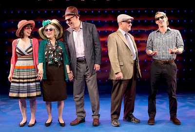 From there, the reviewer's life gets mighty tricky, especially if he wants to spoil as little as he can. (That's my pledge to you, though I might bend it slightly later on.) After all, if a show is literally nothing more than back-to-back-to-back insta-trips to a Catskills club, what more can safely be said about its content without driving a stake right through the heart of its natural hilarity? And if it's delivered by a multitalented cast (comprising three genuine and brilliant oldsters in Marilyn Sokol, Todd Susman, and Lenny Wolpe, and the noticeably younger Bill Army and Audrey Lynn Weston) under laser-precise direction (by Marc Bruni), does anything else matter? I have to go with "no" on this one. Even if you're not familiar with the same-named website that inspired Peter Gethers and Daniel Okrent to create this live adaptation (as, admittedly, I was not), the formula is essentially impenetrable. It's been dressed up a little with a vaudeville-astute set (by David Gallo) that capitalizes on a sliding HDTV for displaying subheadings for the various wisecracks ("Birth," "Sex Before Marriage," and so on) and occasionally depicts locations like a doctor's office or a desert island, and a handful of songs including Tom Lehrer's "Hannukah in Santa Monica" and a bouncy new title song by up-and-coming theatrical composer Adam Gwon. But even if it were just the five performers on a bare, black stage, what's here would still be robust enough to encourage gales of guffaws every minute that rivaland in some cases, it seems, surpasswhat you can currently find on Broadway in the excellent just-opened London import, One Man, Two Guvnors (minus the pratfalls, that is). I'm quite serious. Gethers, Okrent, and Bruni have achieved the near-impossible by assembling an evening in which everythingyes, everythinggets the intended laugh. This isn't to say that every gag lands in exactly the same way every time; at the performance I attended, there were certain pockets of people more predisposed to laugh at certain things than others, and some who had to be coaxed into action gradually. But given the legitimately show-stopping impact of a few of the choicer segments it was equally clear that some things appealed to everyone. Oh yes, even including the gentiles who had somehow ended up in the seats where, one suspects from certain key lines and the script's overall focus, they're more welcomed than they are anticipated (including, for what it's worth, yours truly). It's tough to argue with a track record like that, so I'm not going to trythough inclusion of one maudlin monologue for each "character" and a birth-to-death sequence about a Jewish men named Saperstein come perilously close to interrupting the flow. I am, however, compelled to mention one potential caveat, and it's not a small one: the jokes themselves. They're not all Henny Youngman knock-offs, but a number of them investigate that territory thoroughly, and just about all the rest are sufficiently time-tested that Youngman's great-grandmother would have found them knee-slappers as a girl. And despite PR that suggesting a lot of what you'll hear has been reinvented, that's only the case if you consider "acted out" rather than just "told" as a reinventionwhich I, for one, don't. That helps preserve freshness, but even so, there's something abrasive about 80 intermissionless minutes of this; what begins as a rollicking novelty grows familiar quickly, and if you find your patience starting to fray around the halfway pointwell, you're not alone. But for the most part, the cast makes Old Jews Telling Jokes pretty irresistible. Sokol acquires national treasure status with this material: Her timing could not be better, and her barking of key punch lines ("So you're not married?", "He had a hat!") alone is worth the price of admission. Wolpe carries the bulk of the evening's musical load, but is just as deftly delightful at the merriment-makinghe takes the lead role in two of the centerpiece scenes, one about (ahem) "The Drobkin Fart" and another about a Jew gone WASPy, and is silky smooth in both. Susman's subtle, almost apologetic, delivery is a fine match for his cast mates' brasher bravado, but is every bit as joyous. Army is a major find, wonderfully malleable in a wide variety of roles; and Weston's delightful knife-in-the-back sense of humor nicely compensates for her generally overstated reactions to the audience's screams. Although, really, who can blame her? Given how sanitized, manufactured, and mechanical so many shows are today, it can't be easy for actors to adjust to audiences once again being fully in control. They are at the Westside Theatre now, and likely will be for the foreseeable futureand that's okay. Old Jews Telling Jokes may not advance the cause of comedyat allbut in providing such a thrilling throwback to the days when life really was something to laugh about, it provides a service that, in its own way, is every bit as valuable and necessary.