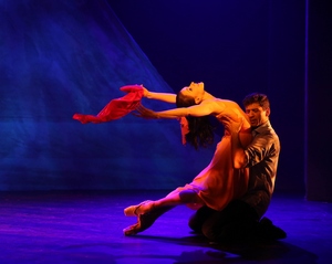 After meeting at a house party which they've both crashed, they admire a small, painted study of Henri Matisse's Dance I (you can see Stroman's mind working when the painting is introduced), John and May spend a passionate afternoon together in Pompeii that ends with him having a panic attack whereupon he leaves without saying goodbye. Twenty years later, John, now an art dealer, meets May again at a posh estate in The Cotswold's. A successful, professional photographer now, she's married to John's client, played with sharp acuity by Teagle F. Bougere, a wealthy industrialist who shoots wild boar on his property as a way of marking his marital turf. Somehow John finds the study of Dance I for his client to give to May, but she really knows it's a gift from him. They proclaim their undying love for each other and make plans to run off into the night, only for John to have another panic attack and an aborted suicide attempt before he runs back to London. Back in London, Marcher continues telling his nephew his story with the study of Dance I conspicuously present. It seems May gave it to him when she died. We then see their last meeting, ten years after The Cotswold's debacle, when John goes to a retrospective show of May's work at which pictures of him from their first two meetings are prominently on display. John's nephew confronts him with the obvious, that he's wasted his life, and returns to make amends to his girlfriend. John then tears apart his apartment in an emotional rage. Throughout The Beast in the Jungle, Stroman weaves in dances which reflect what's happening with John and his transient meetings with May. To that end, she also employs six lovely female dancers: Maira Barriga, Elizabeth Dugas, Leah Hofmann, Naomi Kakuk, Brittany Marcin Maschmeyer and Erin N. Moore, who predominantly function as the dancers in the painted study by Matisse which is a through-line in John and May's story. They're work is distinguished, even if they're a bit crowded on The Vineyard's tiny stage. As always, Yazbeck's dancing is muscular and thrilling, drawing comparisons to Gene Kelly. As his partner, Dvorovenko, who was a principal dancer at American Ballet Theatre from 2000-2014, moves with exquisite grace and is also a terrific actress. For his part, Friedman acquits himself well and is never less than credible as an emotionally barren man searching for some kind of redemption as his world closes in. But despite its strengths, I suspect The Beast in the Jungle will have limited appeal because of its unusual hybrid nature. It's not a dance piece like Contact and it's not a musical like The Scottsboro Boys. It's essentially a play with a multitude of dances inserted and interspersed throughout the dramatic action. The music is beautiful, but nobody sings. But you have to give credit to Stroman, Kander and Thompson for attempting something new and daring. It's what off-Broadway and artistic expression is all about.