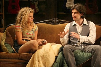Instead, she's populated her world with clever archetypes that make her points through the absolute minimum of effort. Len is the tortured genius, who could fix everything if people would just listen. Max thinks too much. Zoe never thinks at all. William is an empty vessel, not fooled by the vapid Zoe but floored by the spiritually in tune Len. Isabelle is the staunch realist lost amid a crowd of dreamers. But no one feels remotely real. Zoe stings because she so resembles Spears, and Lyles's usual clear-eyed sophistication is a close match for a woman who wants to be the lifeguard for those around her drowning in the crippling, craven culture they've created. But even their performances are calculated rather than organic, on some level as silly as Cullen's caffeinated-insomniac intensity, Gold's unconvincing counter-culture mien, and especially McCabe's tongue-chewing line readings that convey more affectation than youth. For any of these people's concerns to make sense in more than an abstract way, we need to believe that they're on the frontlines of the war between the past and the present, not cowering in a fallout shelter. They're all avoiding something, which makes for compelling drama only if someone is forced to face what they most fear. Here, that never really happens. At least one speech late in the show suggests the story Mensch is trying to tell. Real rock music, Len tells Max, shouldn't be affected: "It's about heat and intensity and emotion. It's about channeling the beast within." He continues: "It's even purer than religion. It's biological. And there's no point of shoe-horning yourself into something if, in the long-run, that's really all it is. Not part of your nature. Or. Perhaps futile would be a better word." This speech is stirring not just because of its naked idealism, but because it describes Len, Asleep in Vinyl as well as it does music. This isn't a play "that comes from the pit of your stomach and your hips and your finger tips and your spleen," as Len claims great rock does. It is what it most loathes: futile, a restless attempt to conclude a conversation it always seems afraid to start.