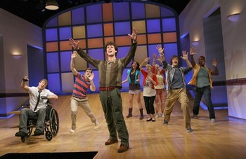 It would be folly to expect Saved, the new musical by Michael Friedman, John Dempsey, and Rinne Groff, to alter the course of a genre growing increasingly dependent on charisma-free stars to fill its stages. But it makes such a compelling case for the casting of people that look, sound, and behave like no one else that you can't help but thrill at the verve on display that no show in town understands as well. There's Celia Keenan-Bolger, the rising young star whose cross-eyed glares and puffed-cheek intensity suggest she devours confliction with her morning corn flakes; straight man extraordinaire John Dossett; and brass belter Julia Murney essaying the leads. The secondary roles find in-ascent traditional heartthrobs like Aaron Tveit and Curtis Holbrook beside ruthlessly modern comic actress Mary Faber. There's even a corrosively funny Morgan Weed on hand to play every imaginable variation of deadpan dread. Each of them, as well as the extra handful of actors who round out the ensemble, has discovered how to live in his or her own world while convincingly maintaining residence with everyone else. Thirteen cast members, 13 discernible voices, 13 identifiable individuals: No musical these days is so lucky, yet your eyes and your ears can't lie, right? Right. Amazing as this group is, it's composed only of humans. Thus, no one present possesses the supernatural ability needed to truly unify this unsteady show, which attempts to blend the best parts of Bare, Falsettos, Spring Awakening, and Hairspray, while evincing no understanding of what made those shows work (or not work, as the case may be). The problems begin at the source, Brian Dannelly and Michael Urban's 2004 film Saved!. A vicious satire on faith-based education and hypocrisy, it doesn't scream "musical" and doesn't even whisper "feel good." It does, however, offer a bevy of colorfully drawn teen characters dealing with issues of perpetual relevance and currently holding particular hot-topic status in the theatre: homosexuality, adolescent pregnancy, and the trouble getting parents to understand either. Unfortunately, the type of belt-sander edges that so particularize the film are commonly considered (and not always without reason) poor theatre business sense. So Friedman (music and lyrics) and Dempsey and Groff (book and lyrics) toned things down, changing the atmosphere from that of Grease in 1972 to Grease in 2007: just the tiniest bit provocative, but mostly cuddly and inoffensive. It's the kind of show you could take your fundamentalist mother to without fear of excommunication. They have, in short, stripped Saved! of not just its exclamation point, but all its punctuation, leaving it the stage-musical equivalent of a run-on sentence. Every aspect of the story is addressed in the blandest musical-comedy terms, starting with the central plot about the believing Mary (Keenan-Bolger), a popular student at American Eagle Christian High School who sleeps with her basketball-captain boyfriend Dean (Tveit) to cure him of his gay inclinations and ends up bearing burdens she didn't bargain for. Among those is trouble with her passionately Christian friend Hilary Faye (Faber), who professes love for everyone but demonstrates it through the stereotypical veil of intolerance - neither Dean nor Mary is safe from Hilary Faye's "help." Meanwhile, Hilary Faye's atheist and wheelchair-bound brother Roland (Holbrook) teams up with the school's most vocal non-believer, the Jewish transfer student Cassandra (Weed), as an anti-spiritual spirit squad. (Though when the time comes to play their part in Mary's story, they're the only helpful and caring souls to be found.) The school's hard-core disciplinarian pastor, Skip (Dossett), is the usual obstacle to be overcome for all the kids, and faces his own challenges with lust for Mary's mother, Lillian (Murney). Like the book, the score wants to have its Communion wafer and eat it, too, with songs that jab at their subject rather than embodying it. Hilary Faye has a song in which the word "love" is repeated 28 times in rapid succession, the first-act finale finds the school's students praying for absolution from sins they don't want to give up, Pastor Skip is so wishy-washy in song it's difficult to accept him as the threat to personal freedom he's intended to represent.